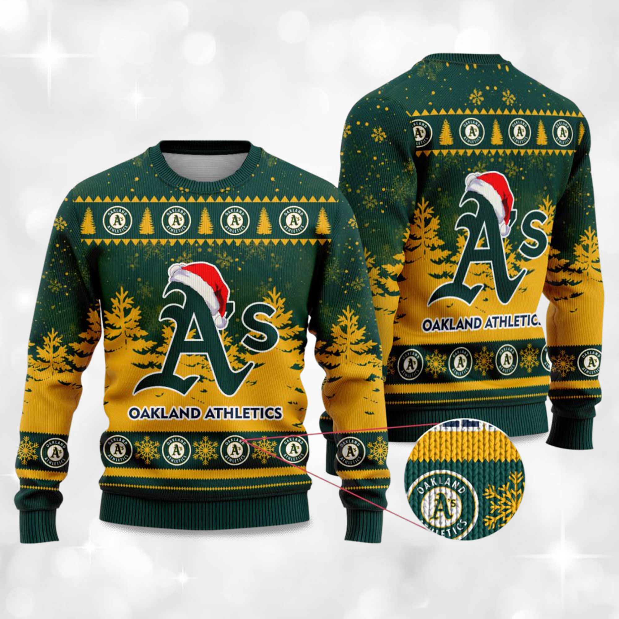 The 2025 Athletics Snowflakes Christmas Ugly Sweater combines a playful winter print with the team’s bold colors. Featuring bright snowflakes, a tall pine tree and a large team logo wearing a cute Santa hat. The design is friendly and festive, perfect for anyone who wants a cozy sweater that brings the holiday spirit and team pride in a simple, fun way.