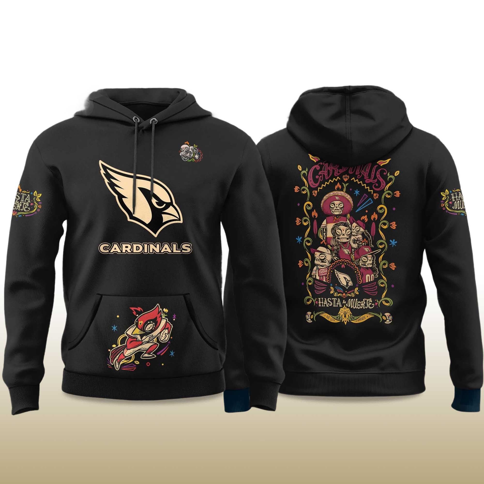 The 2025 Cardinals Hasta la Muerte Hoodie is a tribute to the undying passion of Arizona fans. Inspired by the vibrant spirit of Día de los Muertos, this hoodie combines cultural heritage with the power of football loyalty. The classic Cardinals logo is centered on the front, while the illustration on the back brings life, color, and meaning to your gameday wardrobe. Whether you’re cheering at Stadium or representing your team on the streets, this hoodie will always keep your pride—bold, proud, and forever loyal.