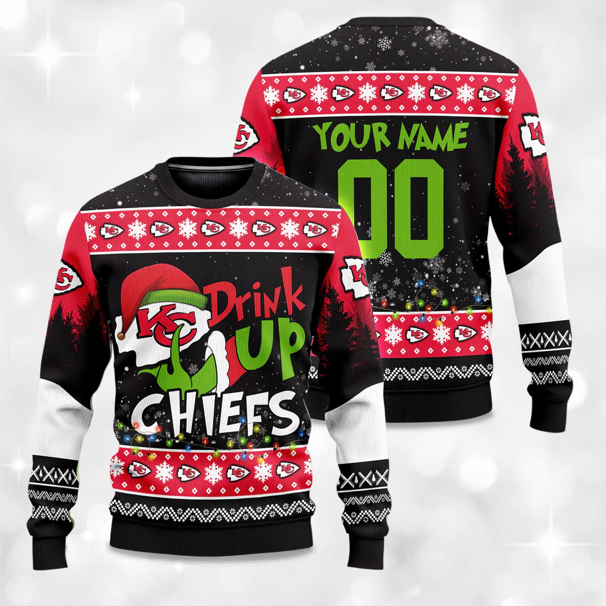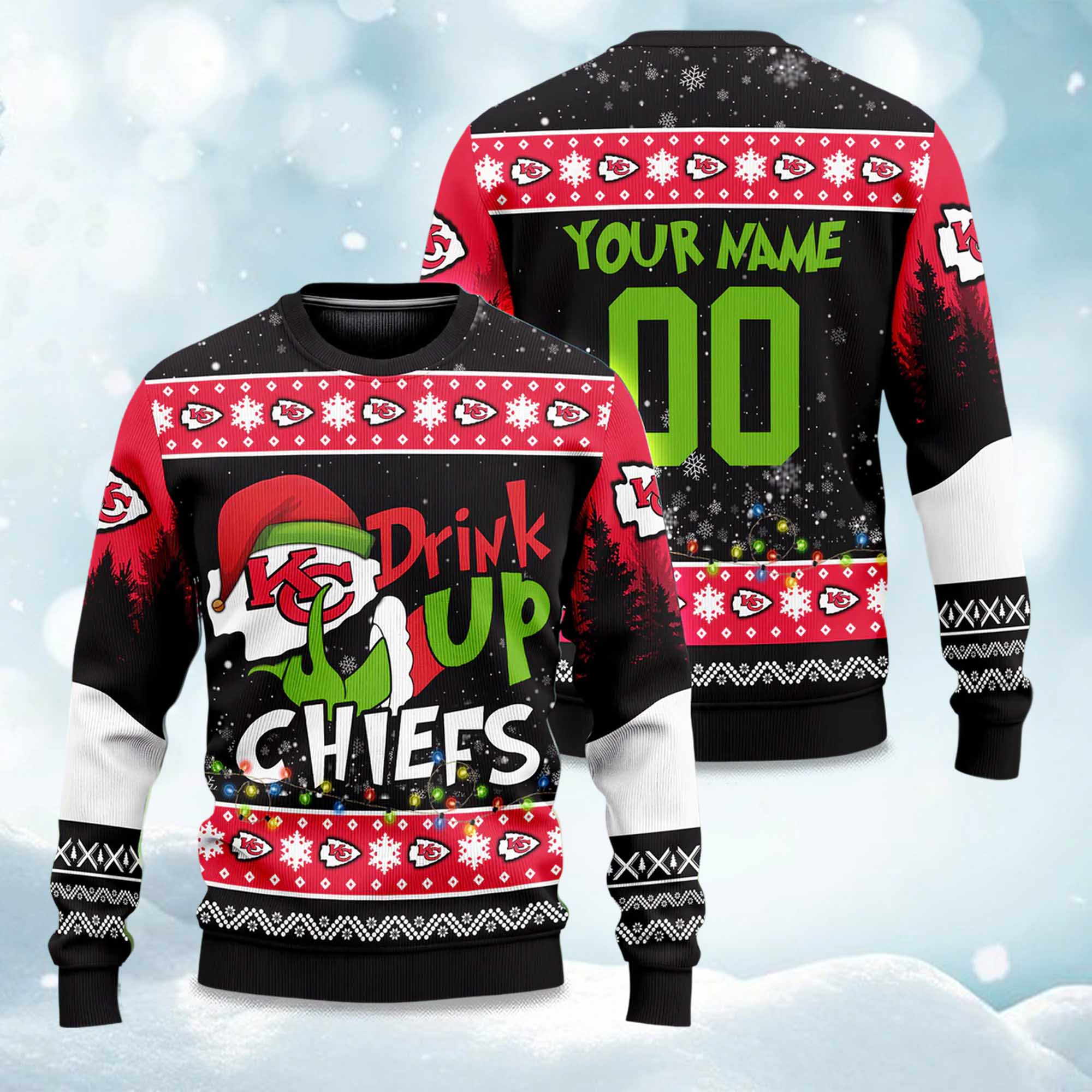 Chiefs Drink Up Grnch Christmas Ugly Sweater 2025 – Holiday Fun with Kansas City Spirit