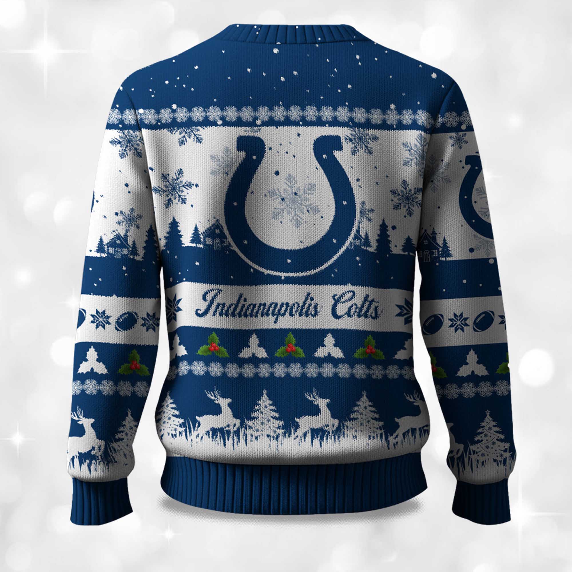If you want a sweater that brings a festive feel and shows your love for the Colts, this one will fit perfectly into your winter plans. Add it to your seasonal outfit and enjoy warm, cheerful moments all season long. Bring it home and make every gathering a little brighter and more vibrant!