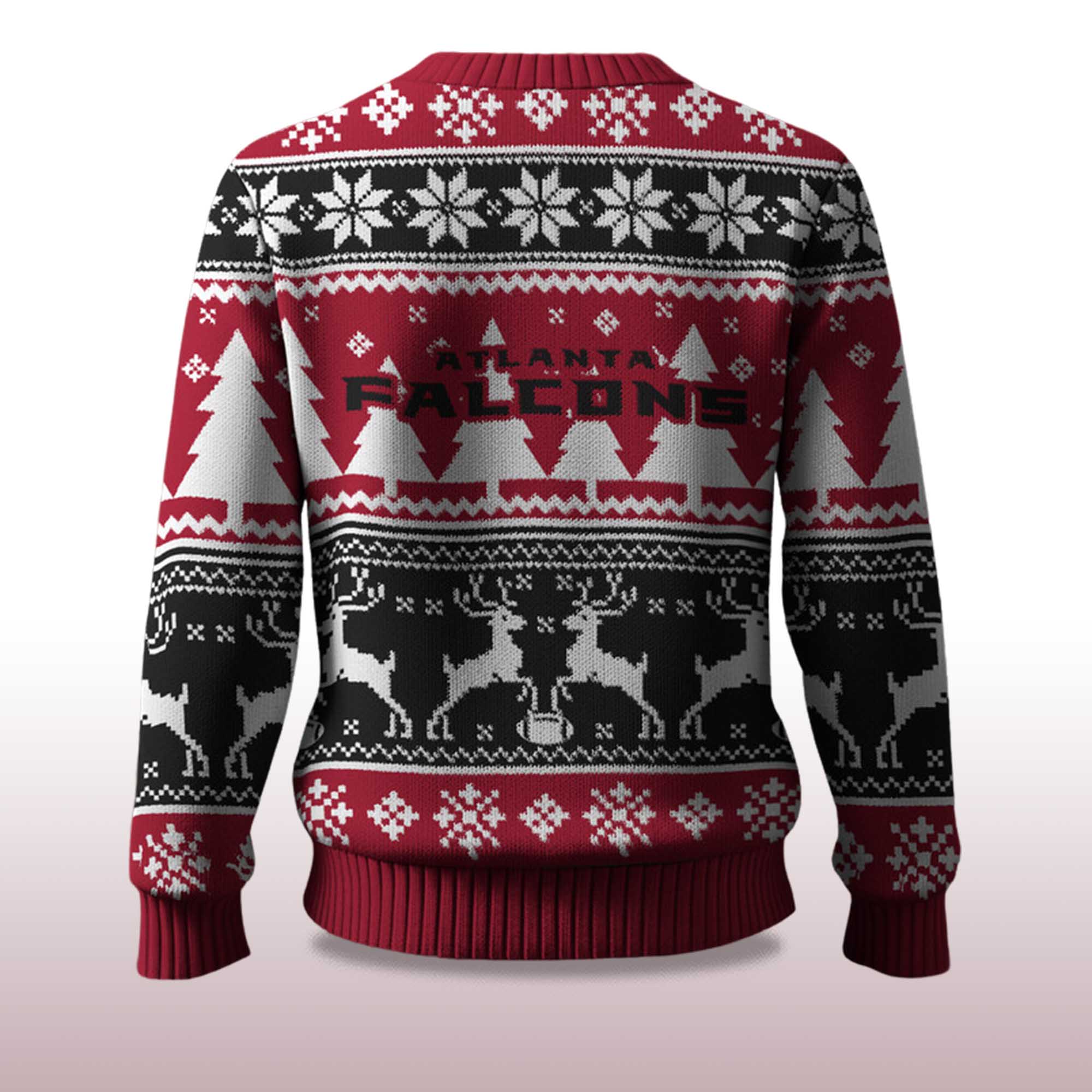 The design is inspired by Atlanta’s relentless energy and the Falcons’ indomitable spirit. The reindeer and snowflake motif represents unity and perseverance throughout the season, just like the team’s determination on the field. The combination of crimson and jet black captures the modernity of the city strong, proud, and unstoppable. This is more than just a sweater; it’s a tribute to the heart of Falcons Nation.