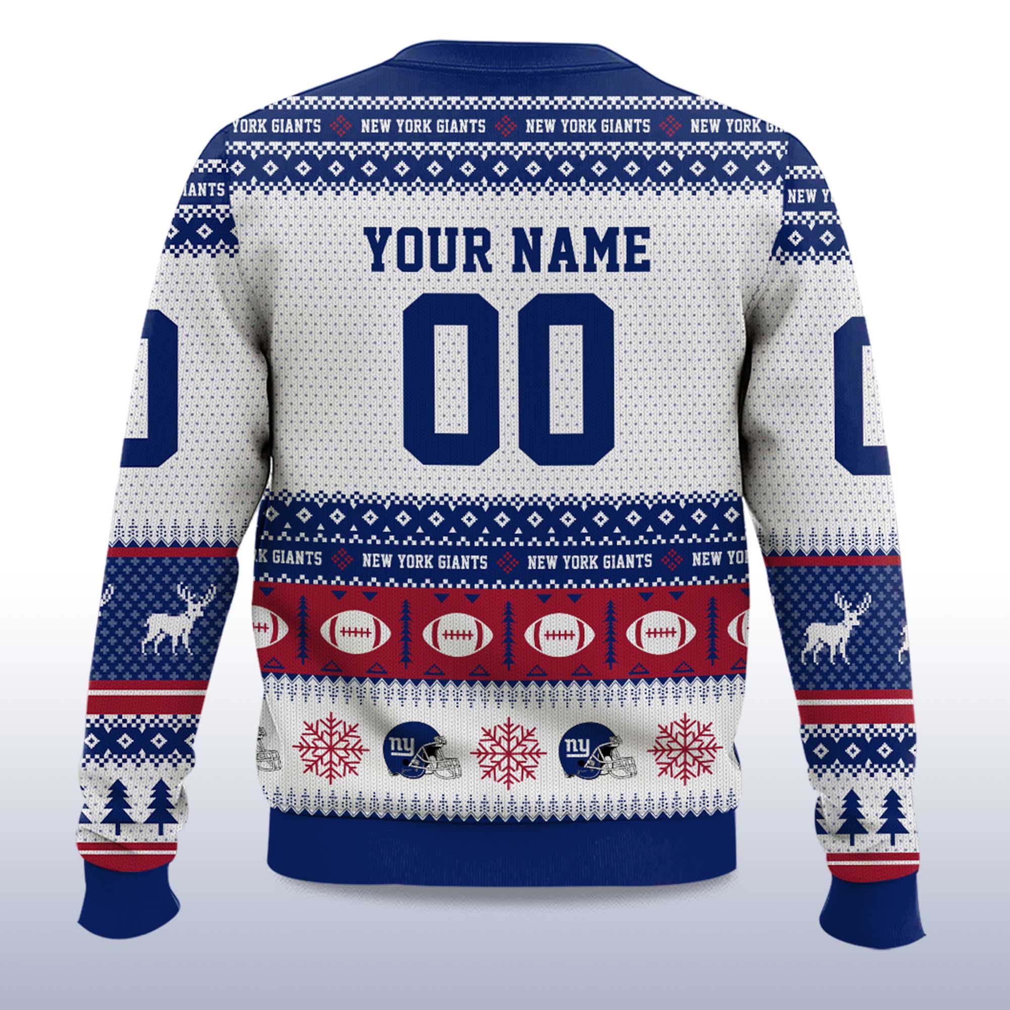 If you’re a die-hard New York Giants fan and the holiday season is getting you excited, this sweater is perfect. The 2025 Christmas Giants Personalized Ugly Sweater combines the Giants’ signature dark blue and red with winter motifs like reindeer, snowflakes, footballs, and pine trees and lets you add your own name or number for a personal touch. Whether you’re watching a home game, attending an ugly sweater party, or hanging out with friends over the holidays, this sweater brings both team loyalty and holiday cheer into one cozy piece.