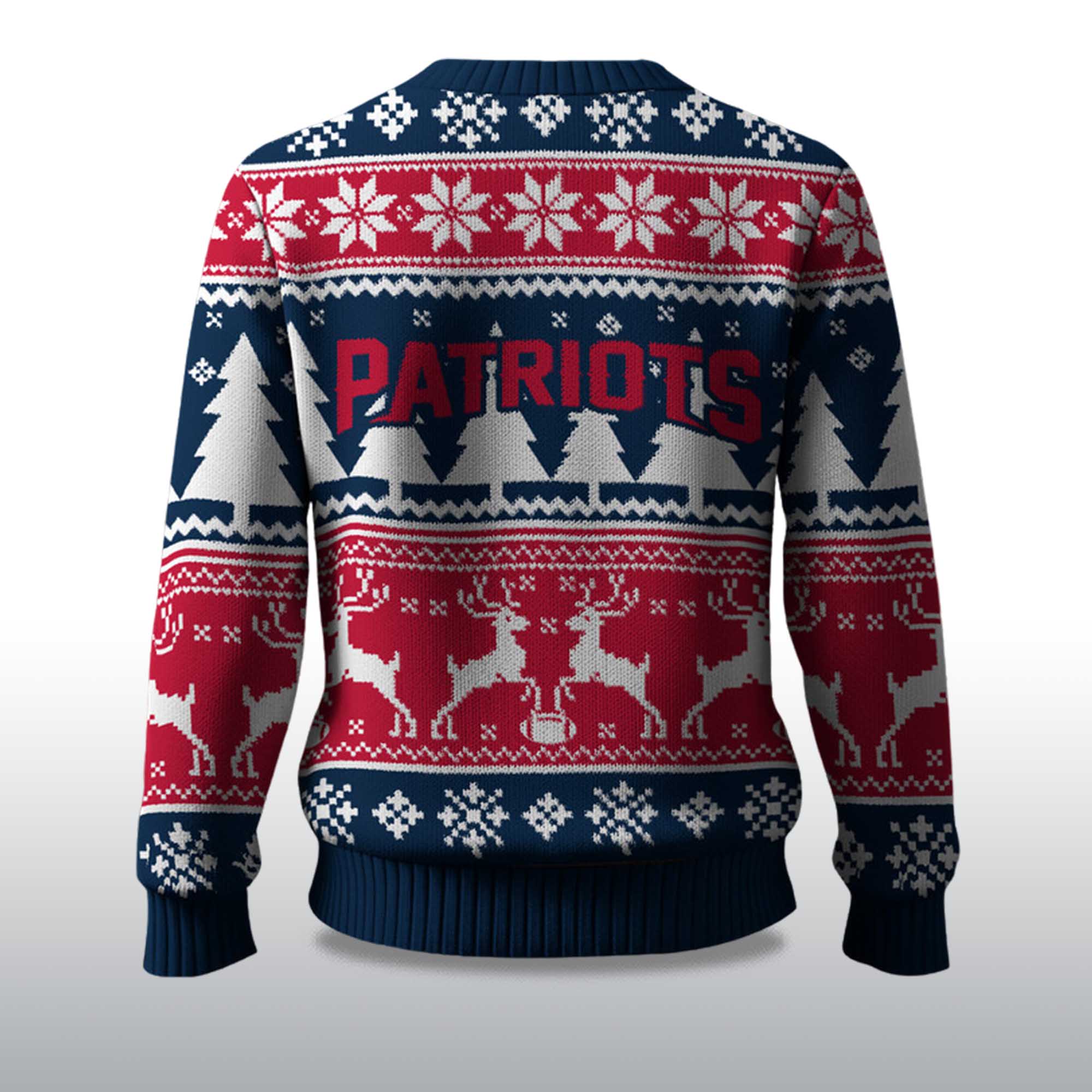 Patriots Christmas 2025 Reindeer Ugly Sweater – Red, White, Blue, and Full of Holiday Spirit