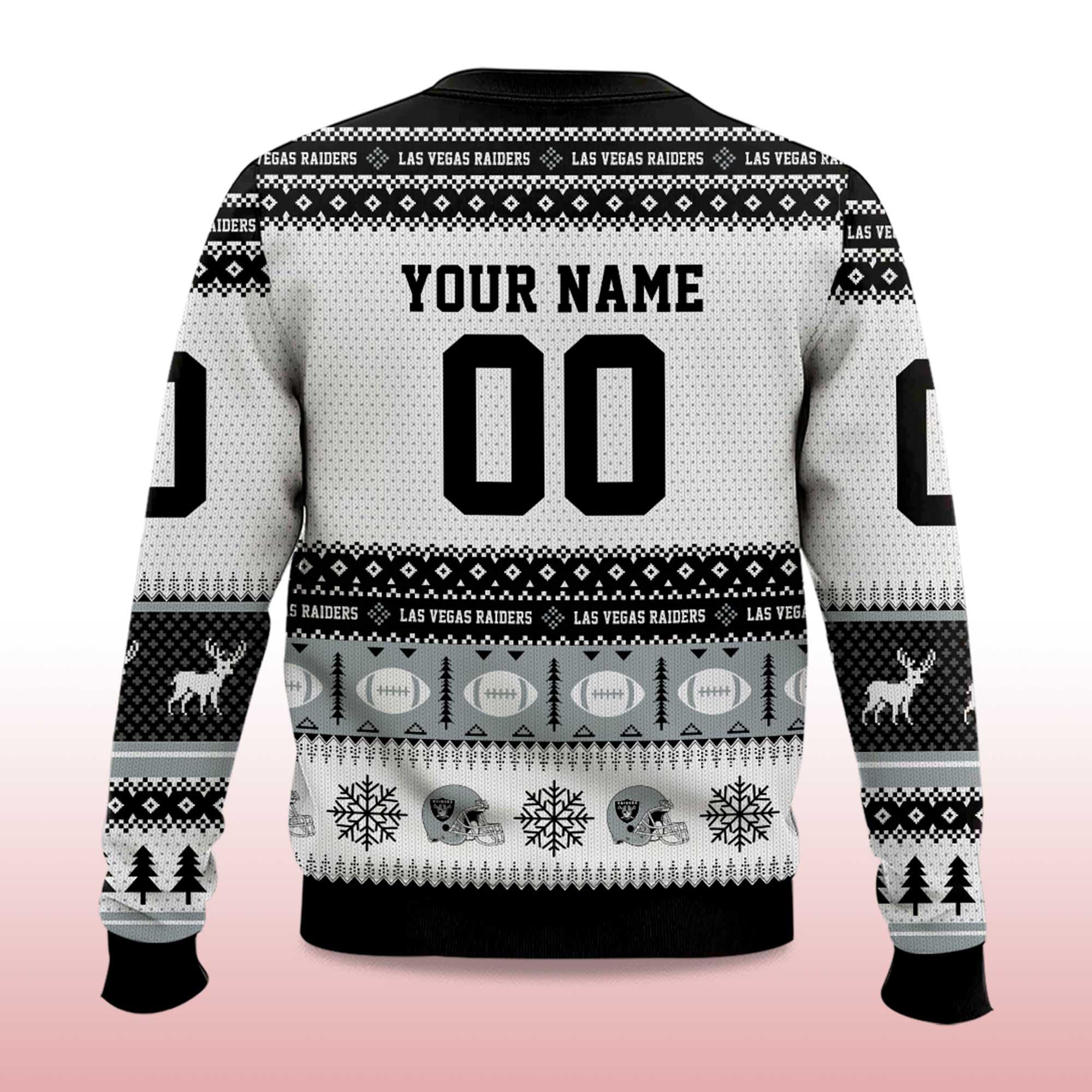 Raiders Christmas 2025 Personalized Ugly Sweater – Striking silver and black holiday style for true Las Vegas Raiders fans