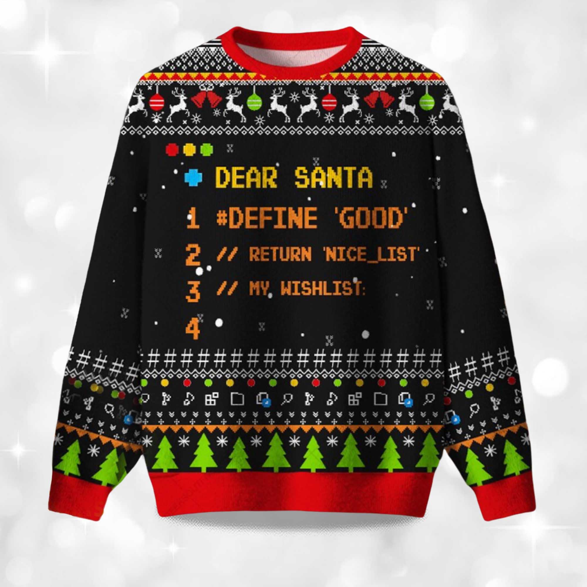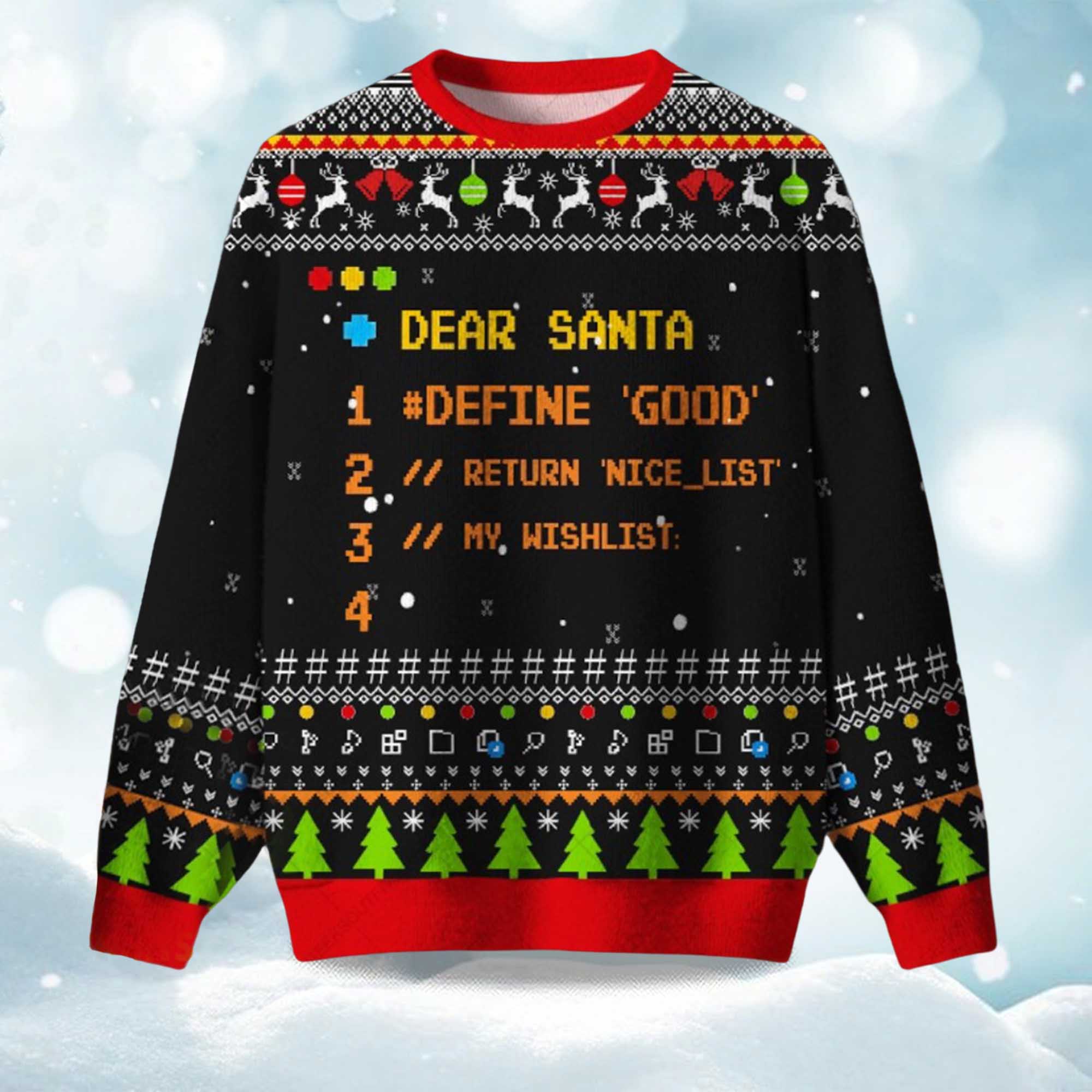 2025 Dear Santa Define Good Return Nice List My Wishlist Ugly Christmas Sweater – Fun Programmer Style for the Holidays