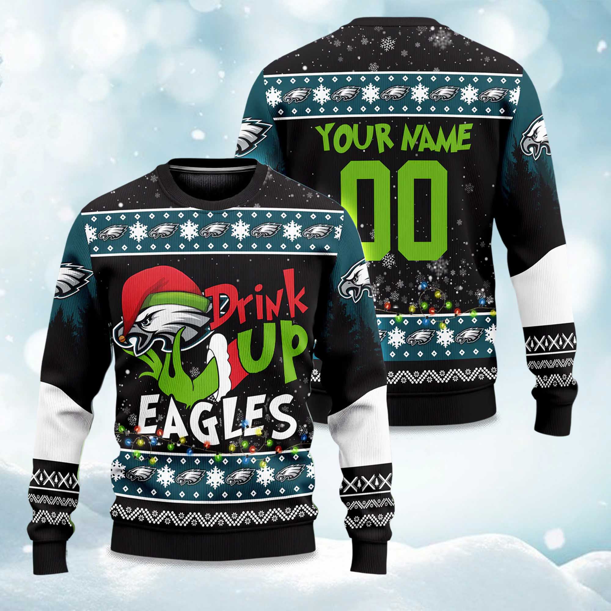 Eagles Drink Up Grnch 2025 Ugly Christmas Sweater – Holiday Fun for Every Fan