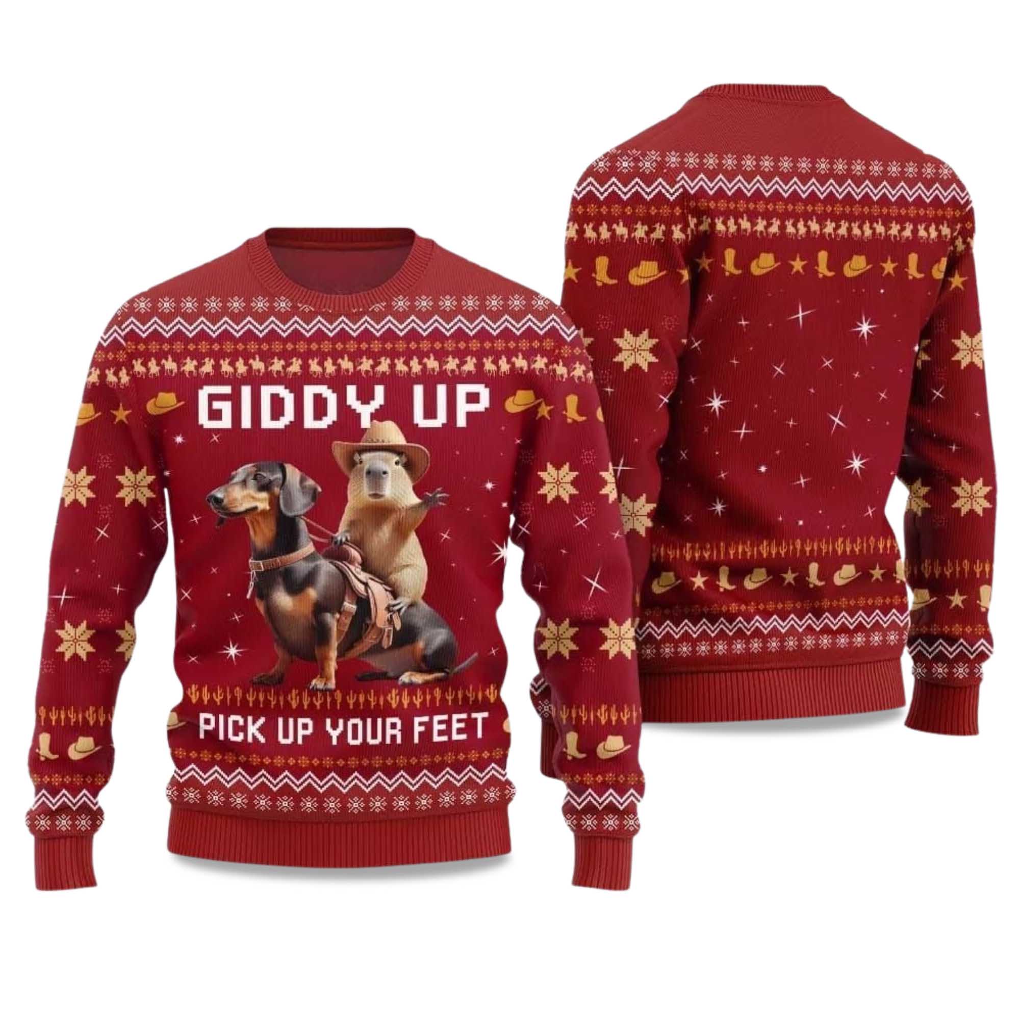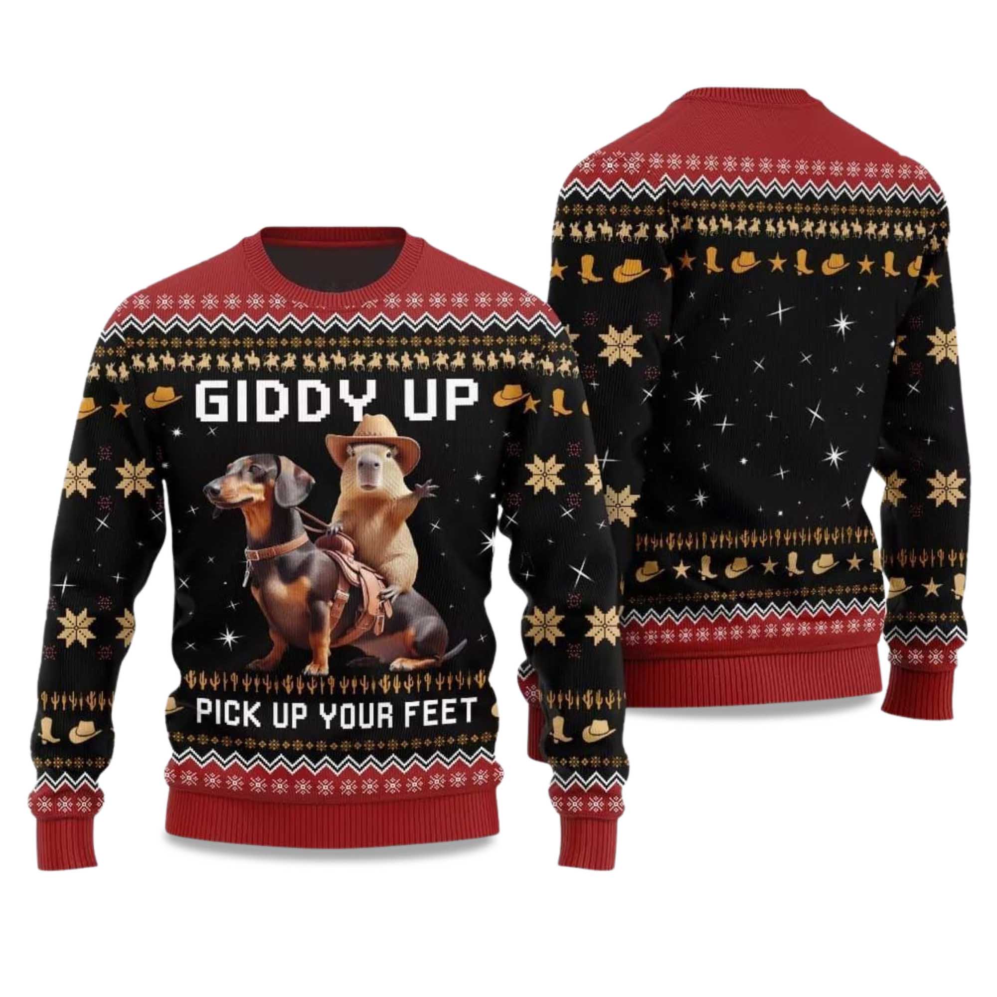 Giddy Up Pick Up Your Feet Dachshund Capybara 2025 Ugly Christmas Sweater – Holiday Fun with a Western Style