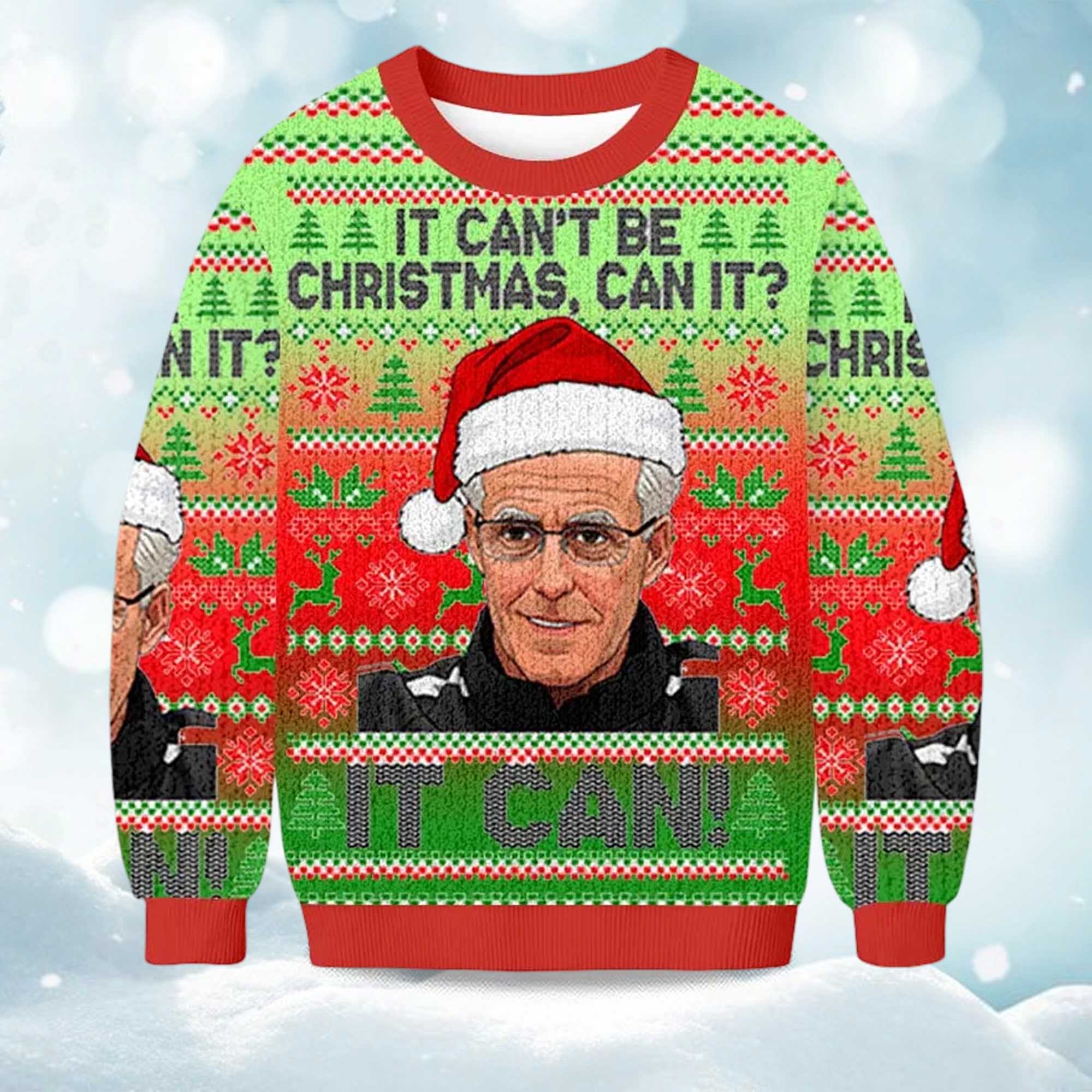 The 2025 It Can’t Be Christmas Can It It Can Christmas Ugly Sweater brings a fresh, playful twist to holiday fashion. Featuring a vibrant red, green, and winter motif, the sweater combines holiday symbols with a humorous portrait, creating a festive look that’s hard to ignore. Whether you’re attending a party, a company meeting, or a family gathering, this design will bring a playful, witty atmosphere to the entire holiday season.