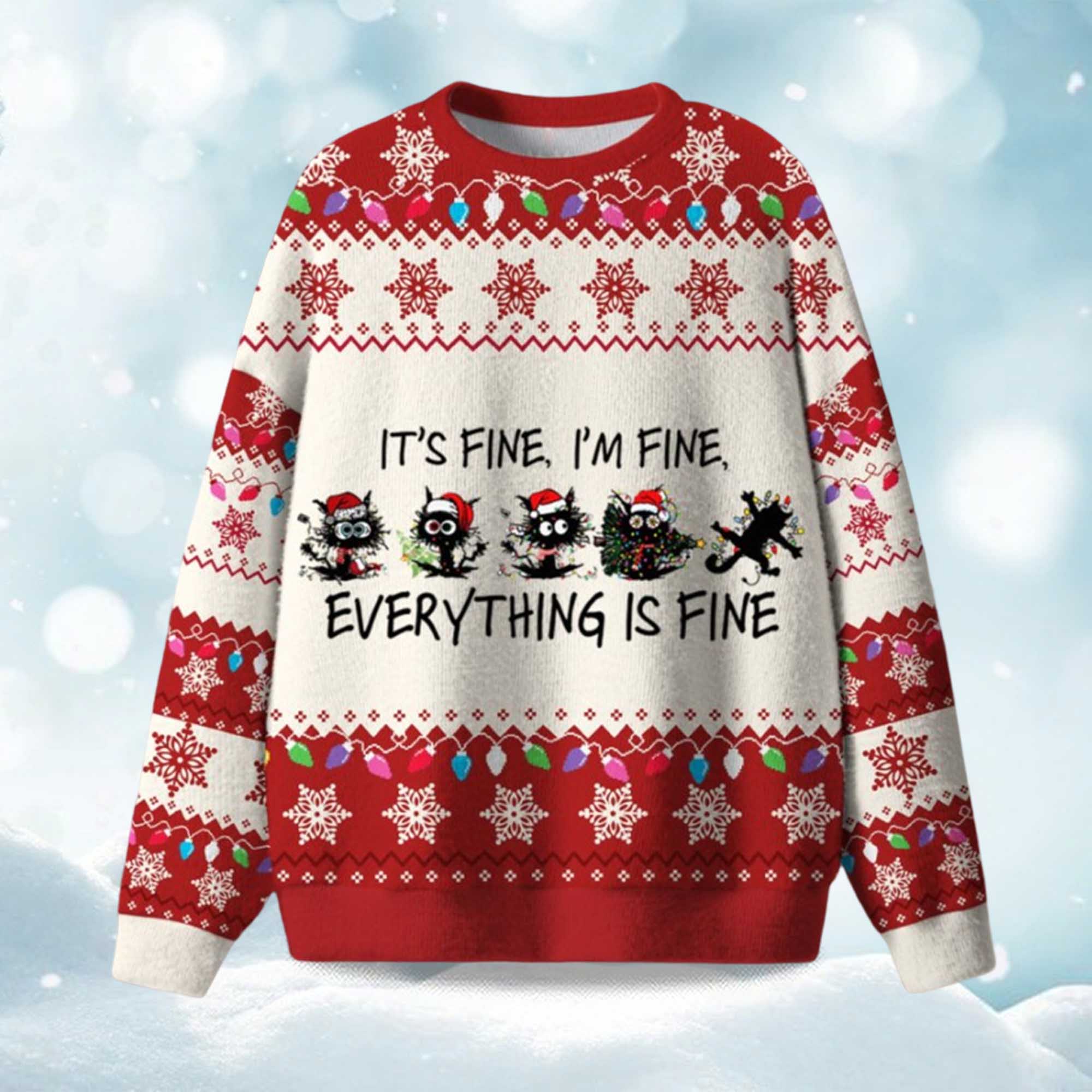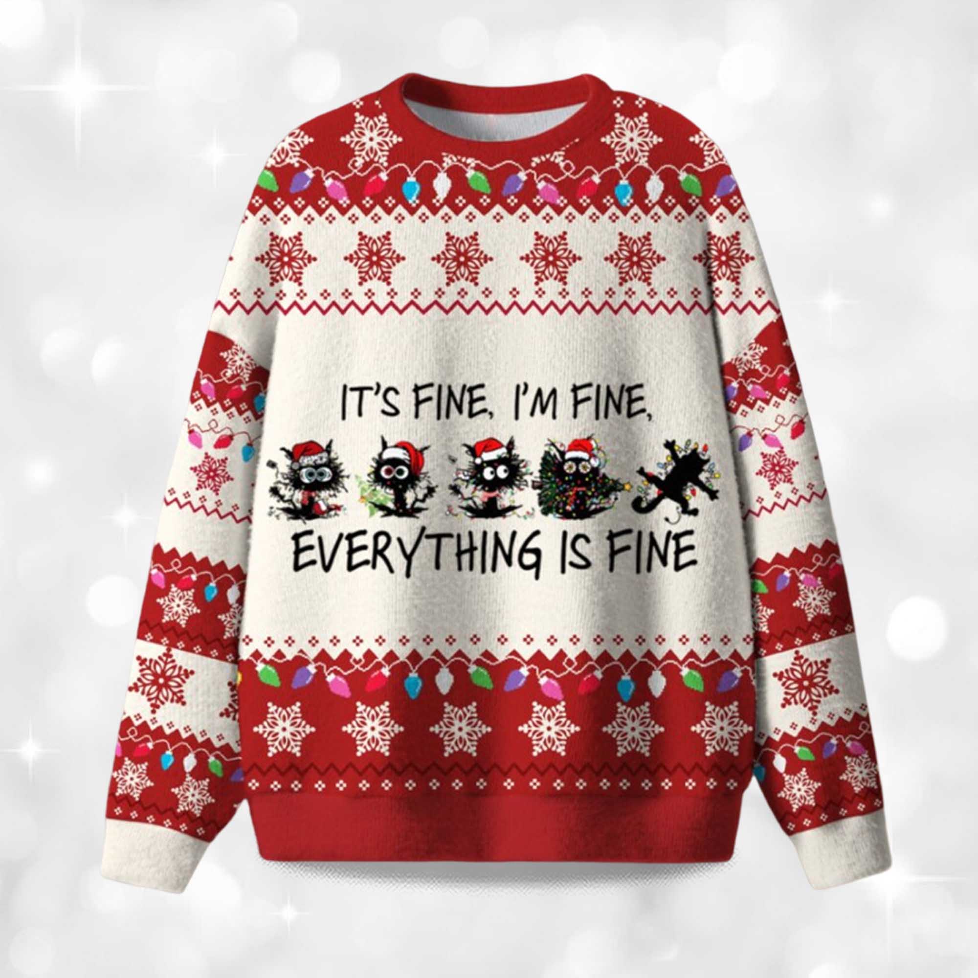 2025 It’s Fine I’m Fine Everything Is Fine Ugly Christmas Sweater – The Funniest Holiday Chaos Outfit