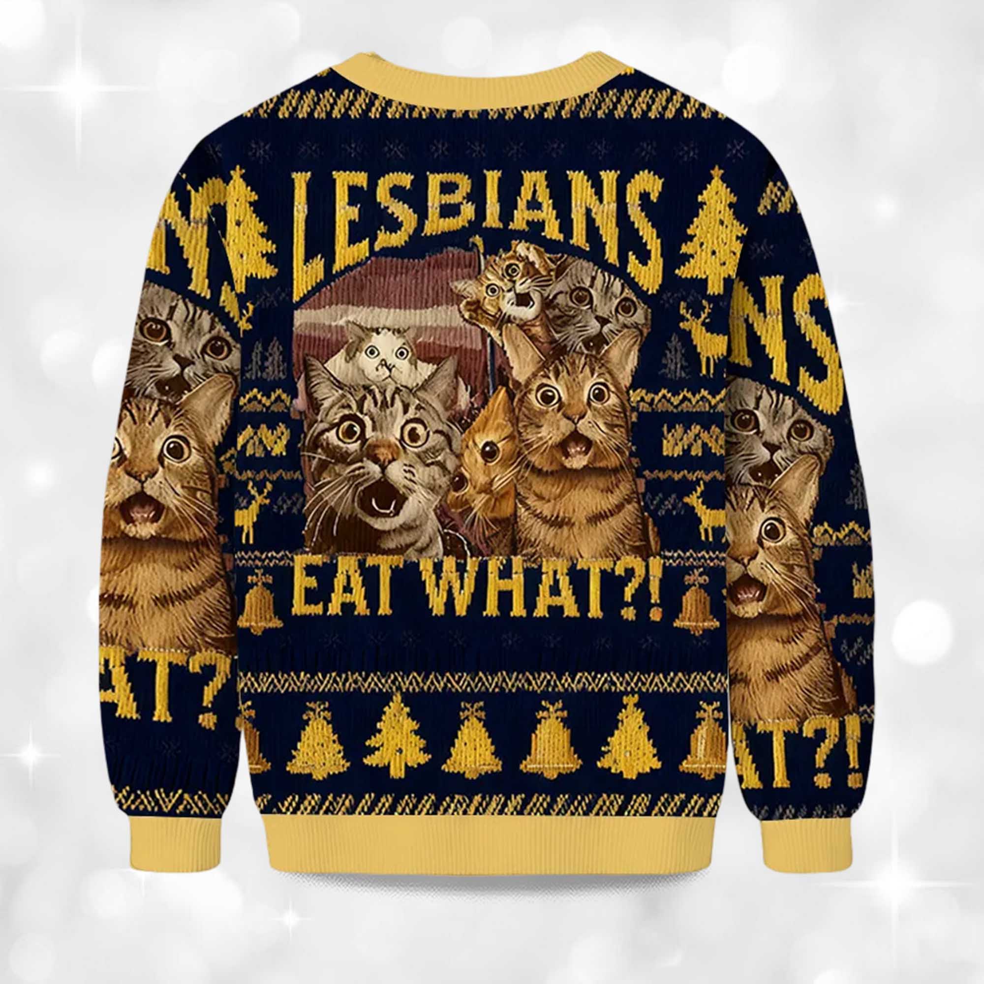 2025 What Lesbians Eat Cat Meme Ugly Christmas Sweater – The Viral Meme Sweater That’s Getting All the Holidays