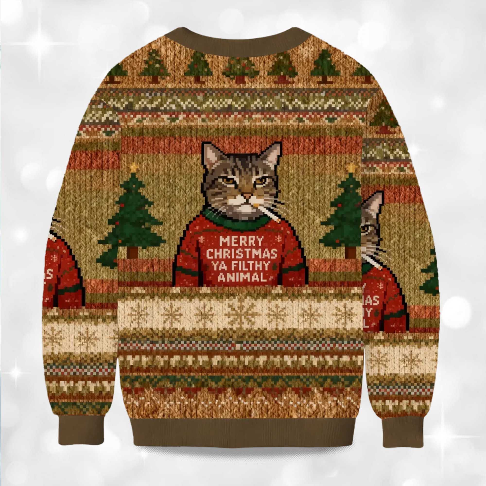 Merry Christmas Ya Filthy Animal Cat Ugly Christmas Sweater 2025 – Classic Humor Meets the Holidays