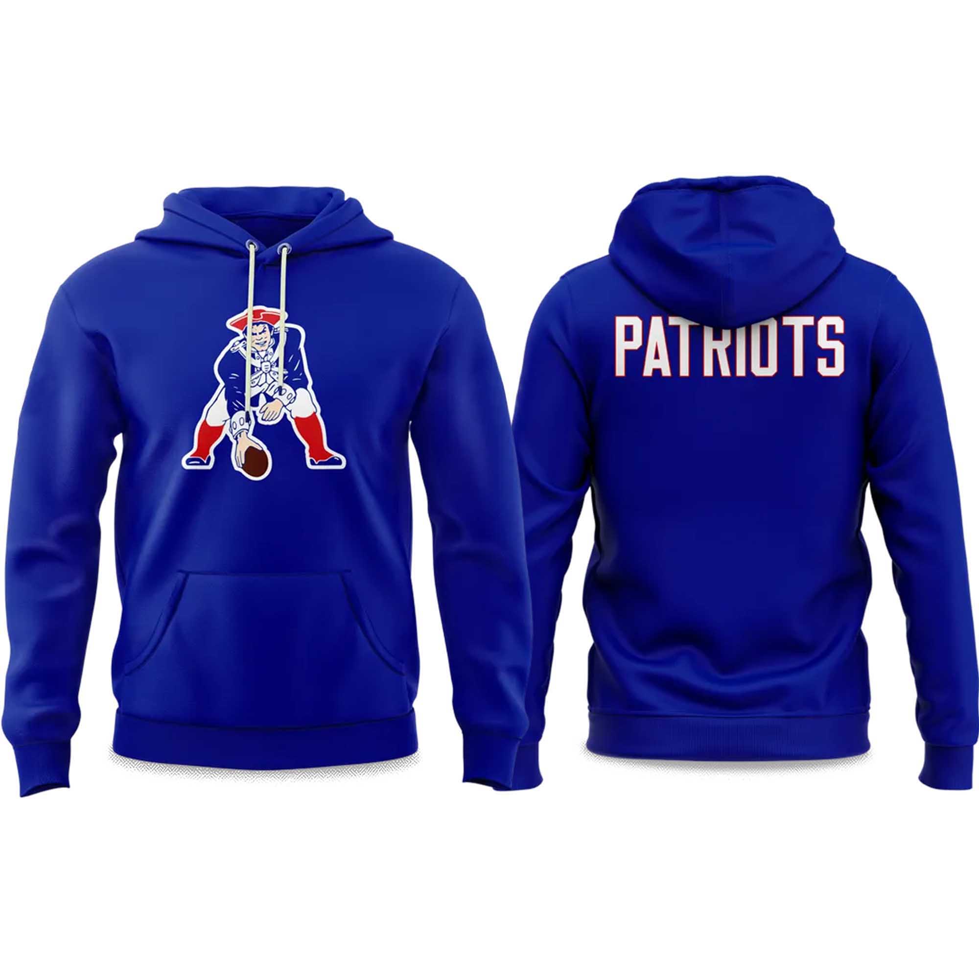 The 2025 Patriots Throwback Historic Hoodie has quickly become a fan favorite as nostalgia returns this season. With a bright royal blue base and a classic mascot at the center, the sweatshirt evokes the energy of classic football days. Fans who love items with a sense of history and personality will instantly connect with this fresh design.