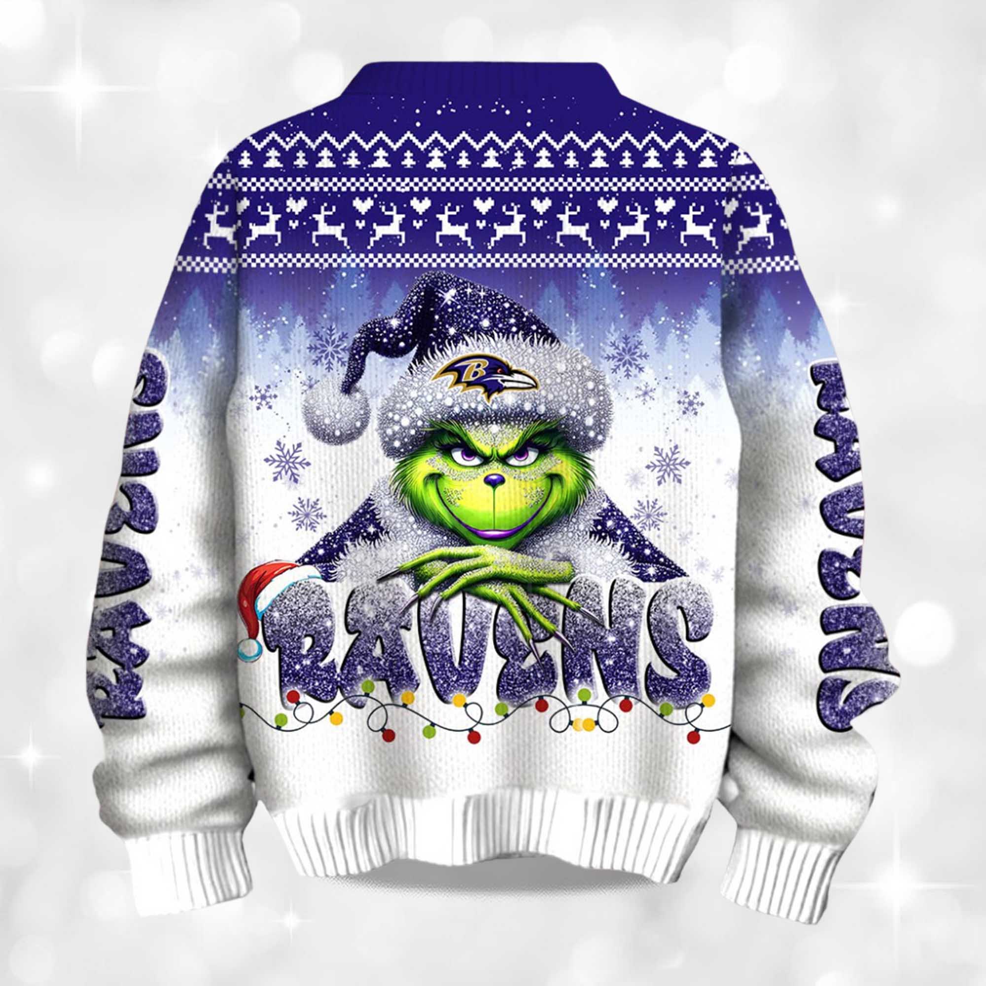 “2025 Ravens Grnch Season Christmas Ugly Sweater – Fun Holiday Style for Baltimore Fans”