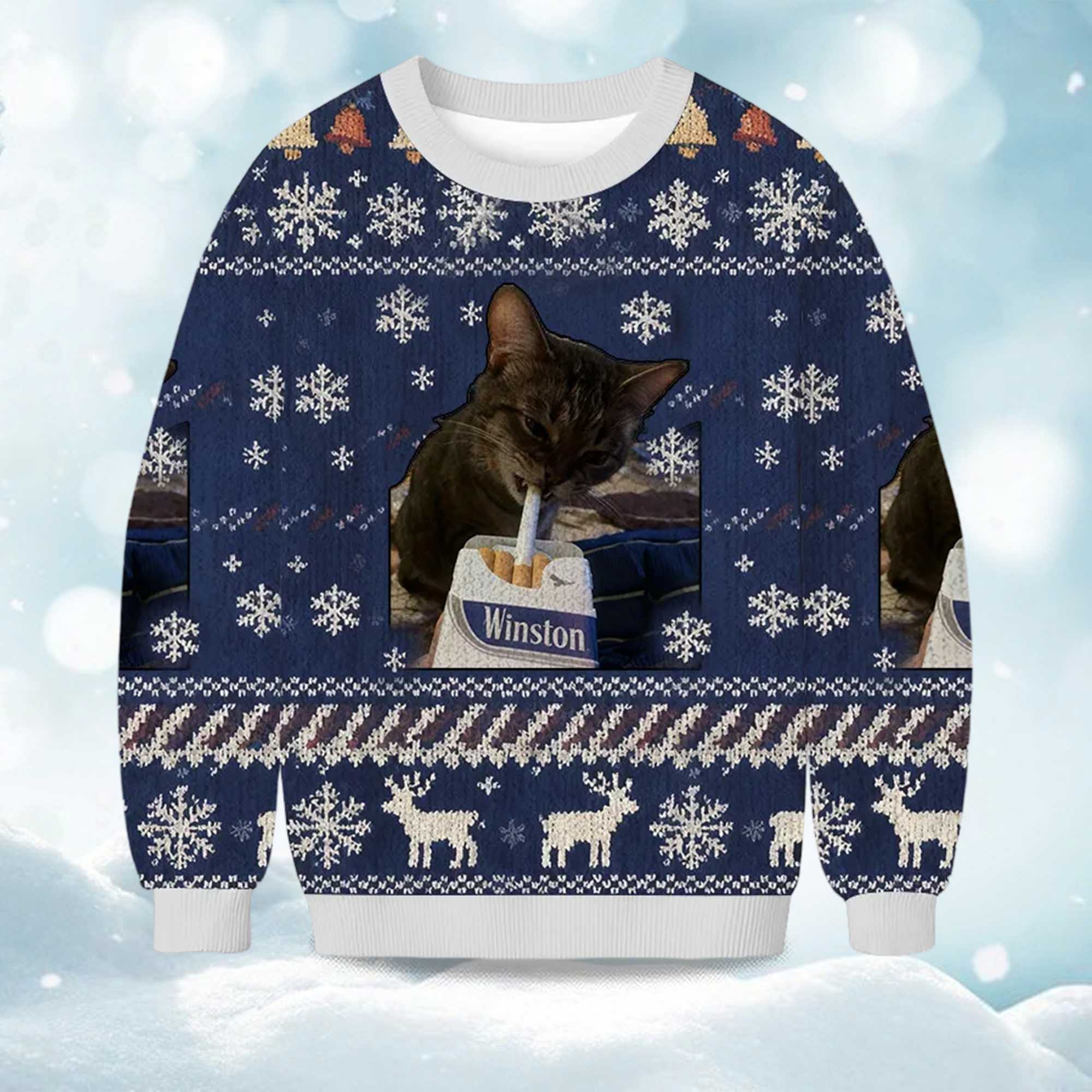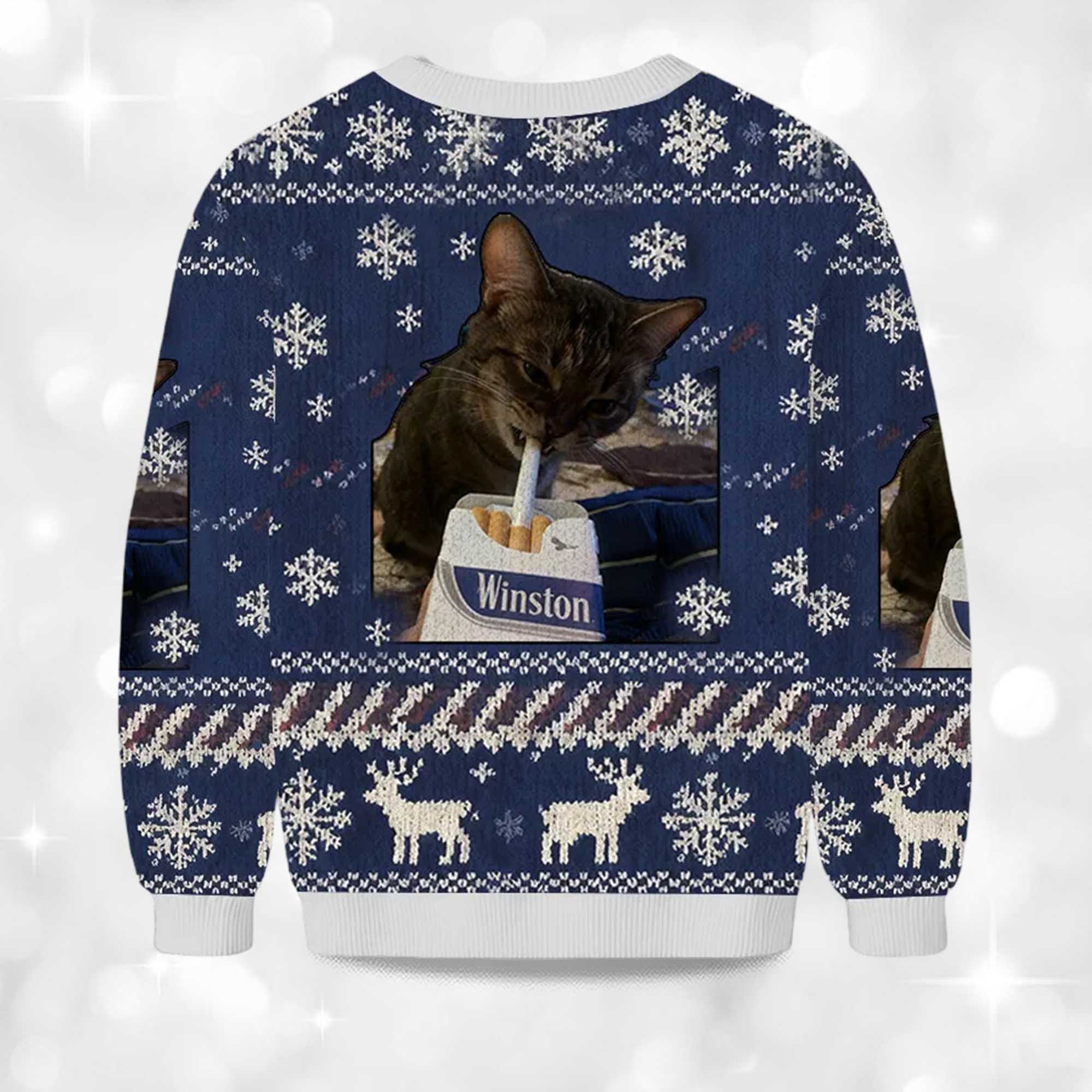 Winston 2025 Ugly Cat Sweater – A cheeky meme twist for the holiday season