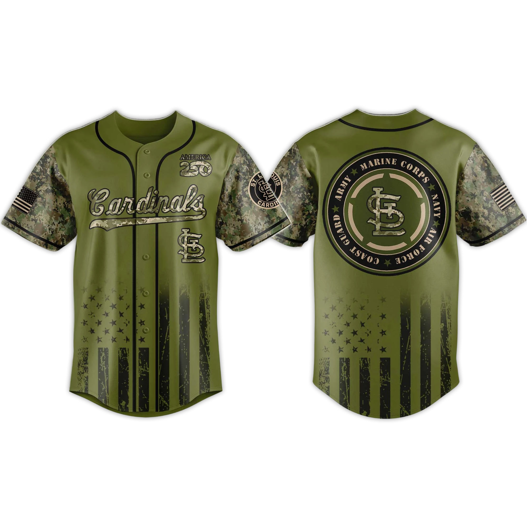 The design carries a powerful message of respect and unity. The olive tones reflect military heritage, while the stars and stripes symbolize national pride. The emblem on the back of the shirt is a tribute to servicemen and women, reminding fans of the event’s purpose. Every detail has been carefully chosen to honor those who serve the country while also celebrating the Cardinals’ baseball.