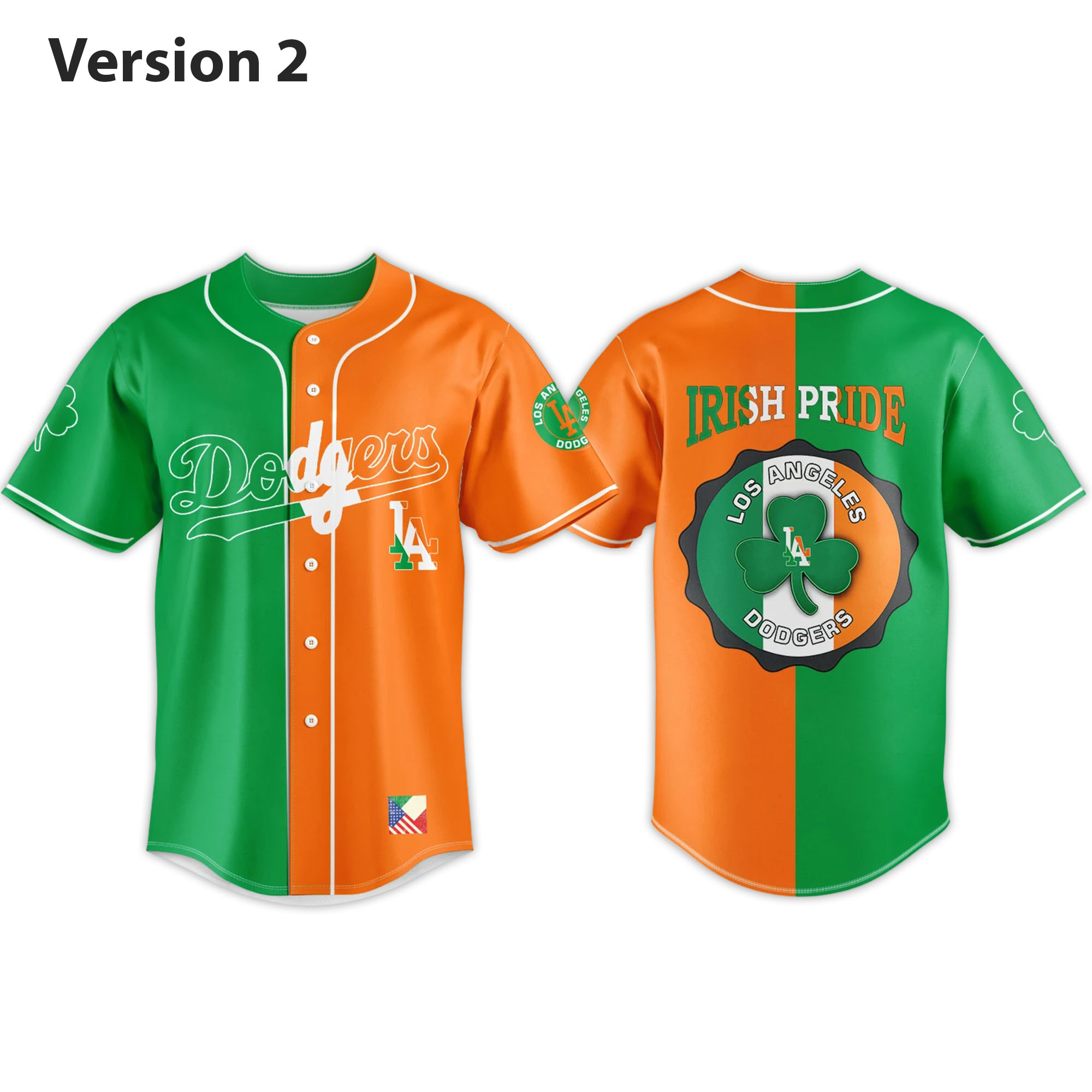 This design takes on deeper meaning by combining Dodgers tradition with Irish cultural icons. The shamrock symbolizes luck and heritage, while the green and orange color scheme reflects Irish identity. Combined with the iconic Dodgers branding, the shirt creates a connection between sport and cultural celebration, making it a standout product both visually and emotionally.