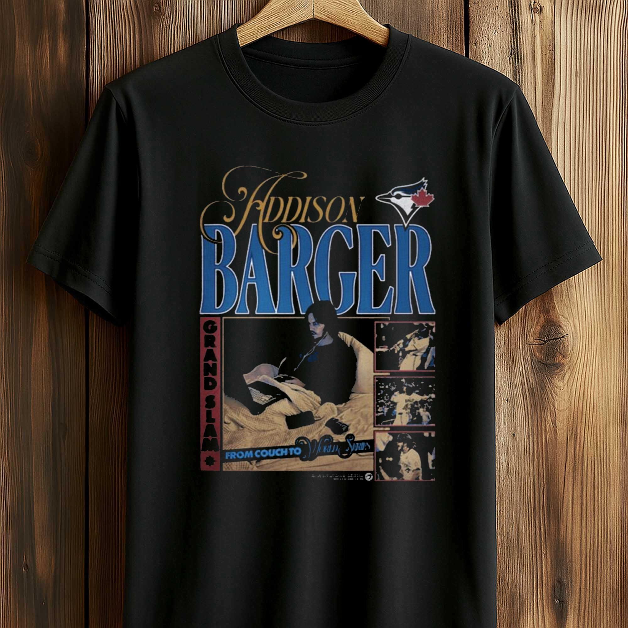 This shirt has the potential to increase in collectible value over time. As Addison Barger continues to develop in the league, early fan merchandise like this often becomes meaningful mementos. The unique concept and artistic layout help it stand out from the team’s usual souvenirs, giving it an advantage in the eyes of collectors looking for something memorable and different.