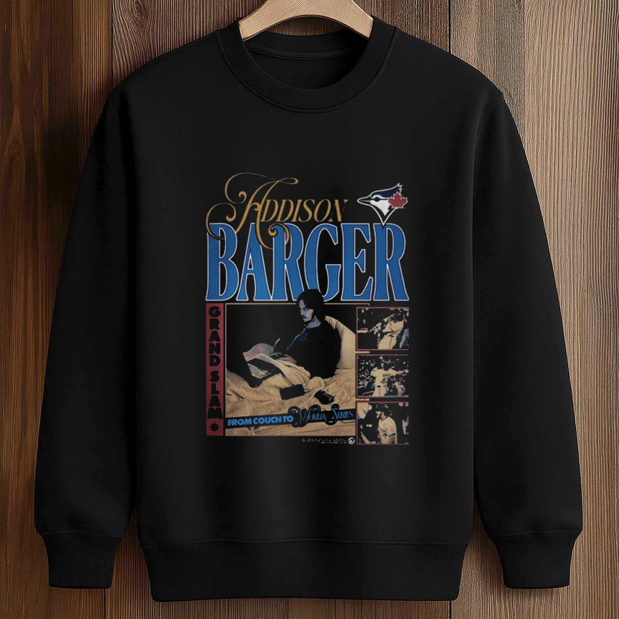 The 2026 Giveaway Blue Jays Addison Barger Couch T-Shirt is gaining attention as one of the most talked-about fan items this season. Inspired by the rise of Addison Barger and the relaxing moment on the sofa concept, the shirt combines personality with baseball culture. It’s the kind of shirt fans love to wear both at games and in everyday life.