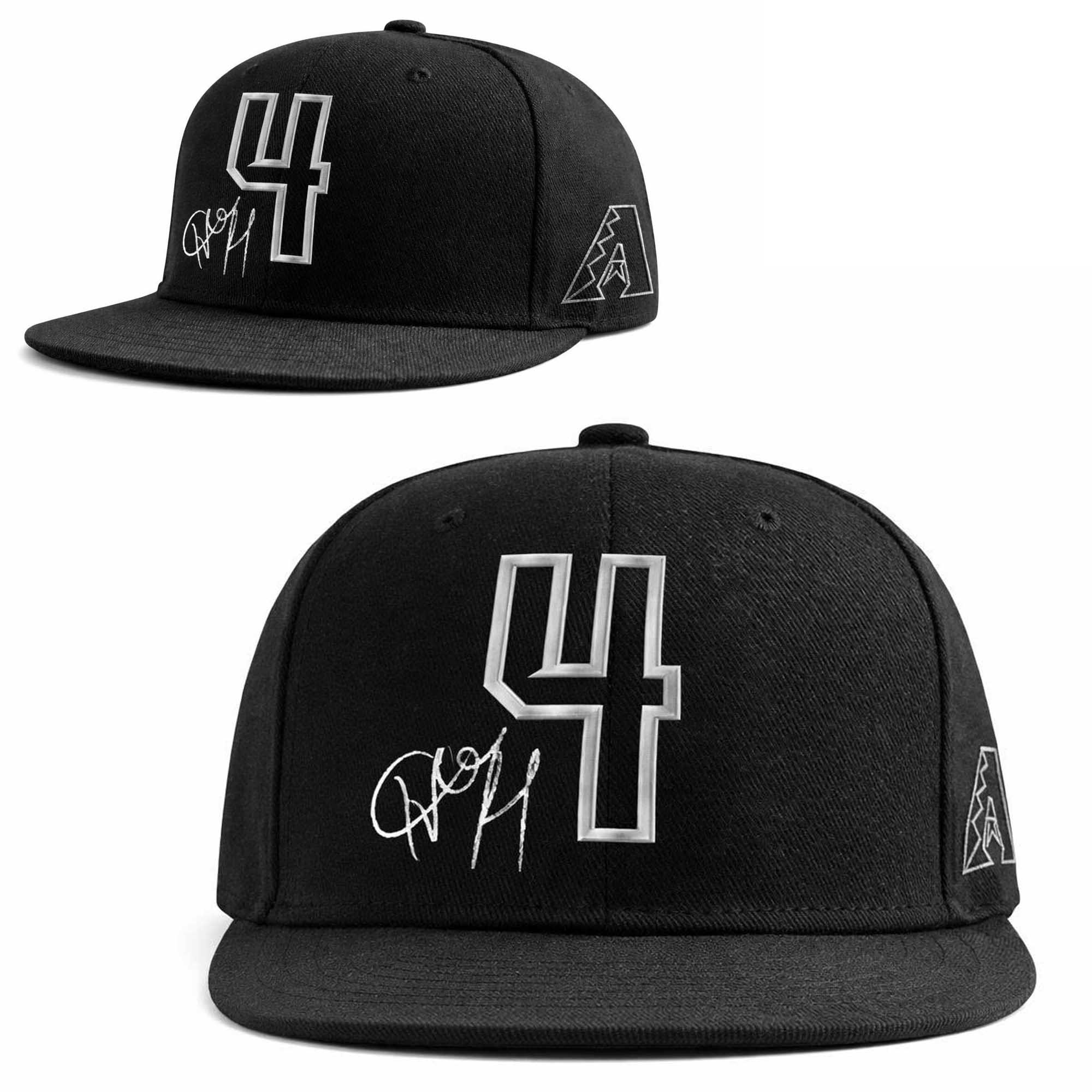 The cap has a sleek black finish that easily matches a variety of fan outfits. The large number 4 on the front represents Ketel Marte’s jersey number and creates a striking accent. The signature printed below the number is a special tribute to the player. The Diamondbacks logo patch on the side shows pride in the team, while the flat brim and sturdy crown maintain the modern look of a baseball cap.