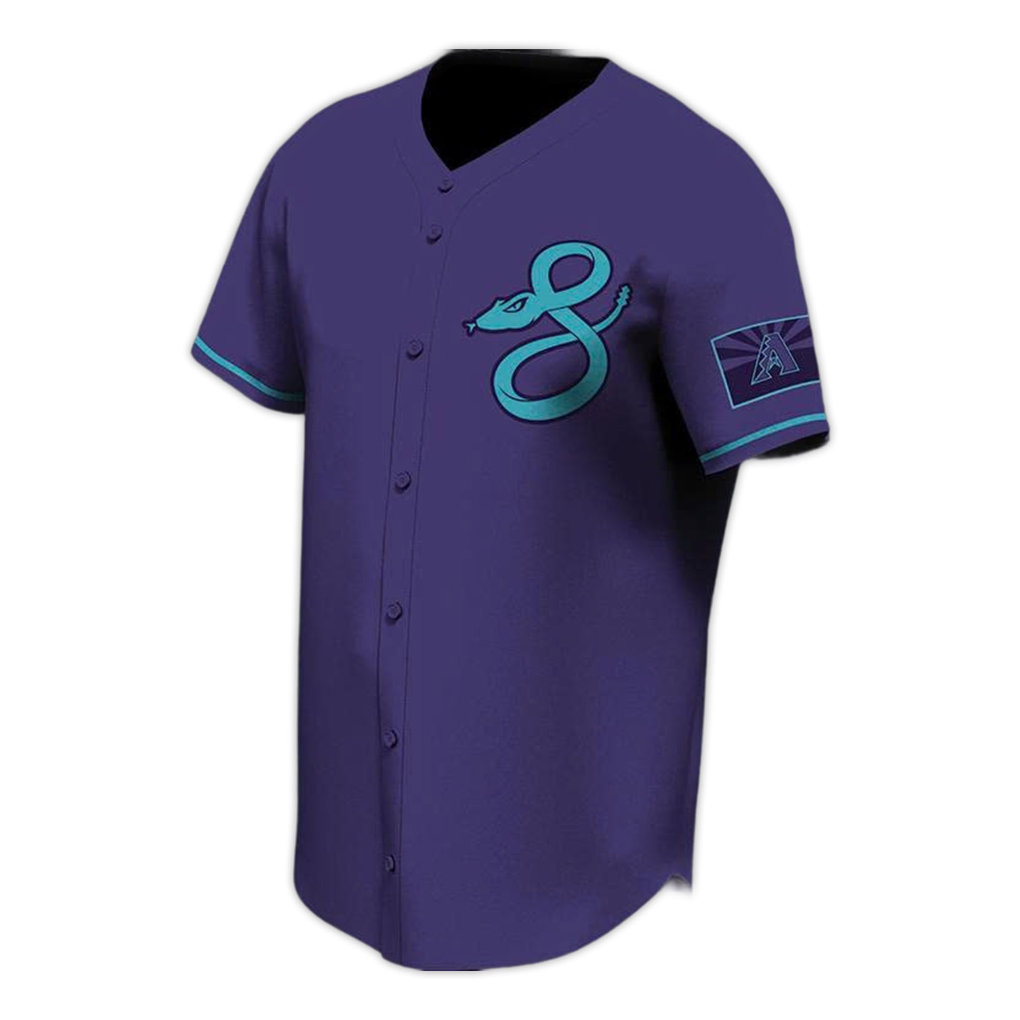 The jersey design focuses on bold colors and clear identification. The dominant purple symbolizes the Diamondbacks’ distinctive playing kit, while the turquoise trim adds brightness and a modern style. The snake-shaped S logo is the main highlight, easily recognizable to fans who follow the team’s Serpientes games.