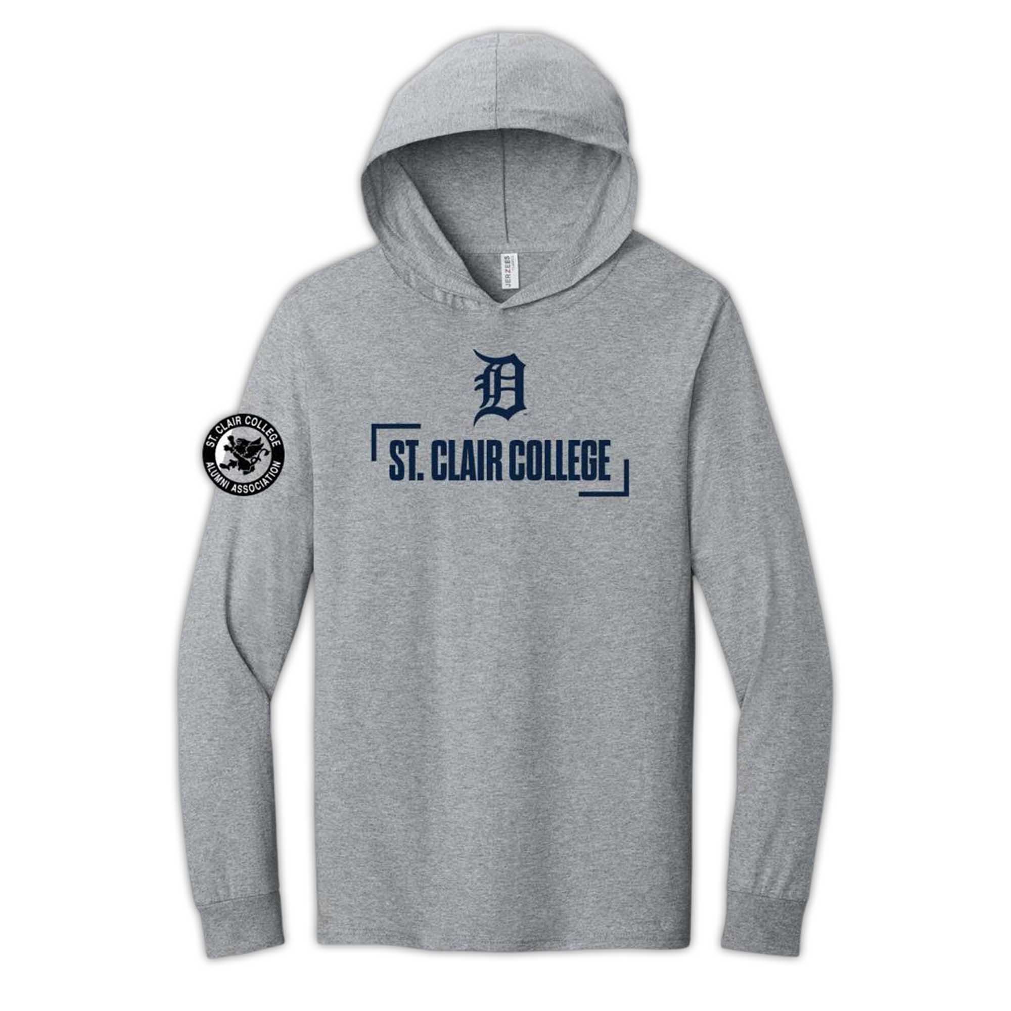 The hoodie focuses on a simple and recognizable design. The Detroit “D” logo connects the hoodie to the city’s renowned baseball tradition, while the St. Clair College lettering highlights pride in the college. The grey color keeps the look simple and modern, easily paired with everyday outfits. The hooded construction keeps you warm in chilly weather, and the long sleeves offer comfort for everyday wear. The emblem on the sleeve is an added detail, highlighting the hoodie’s college identity.