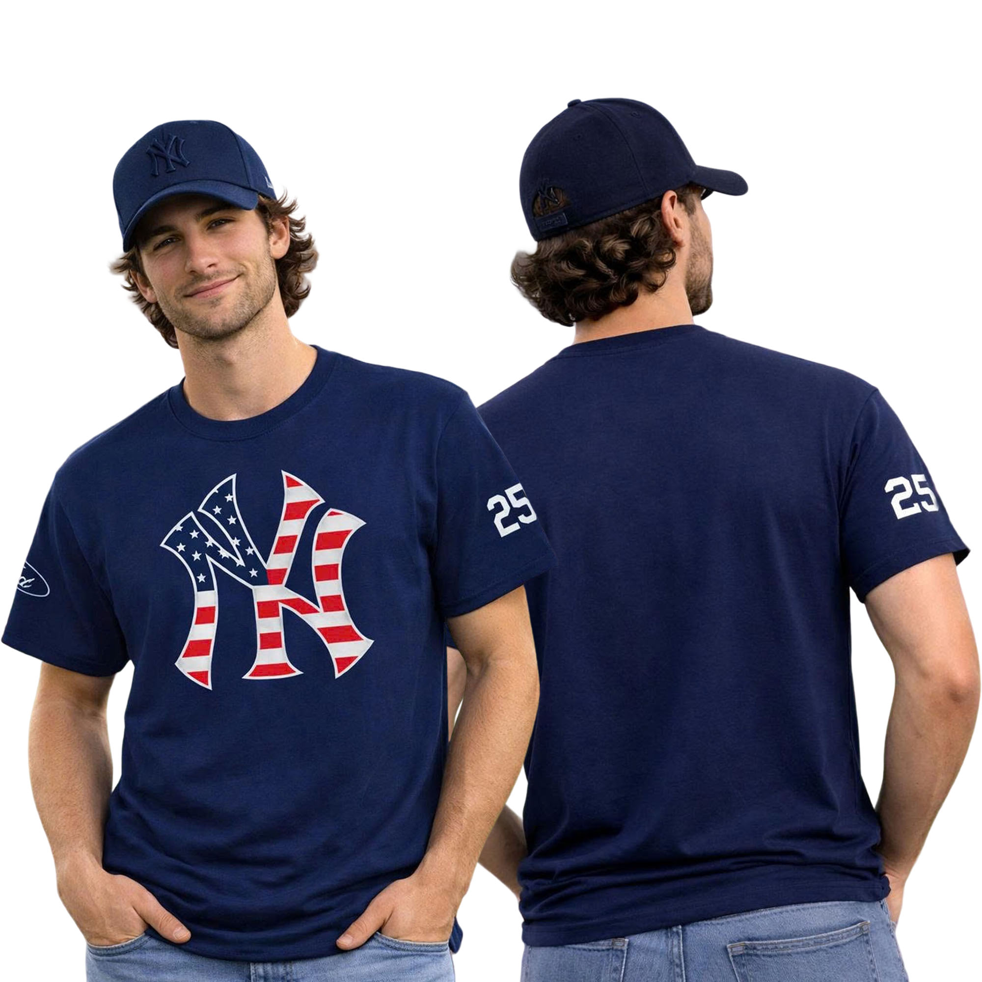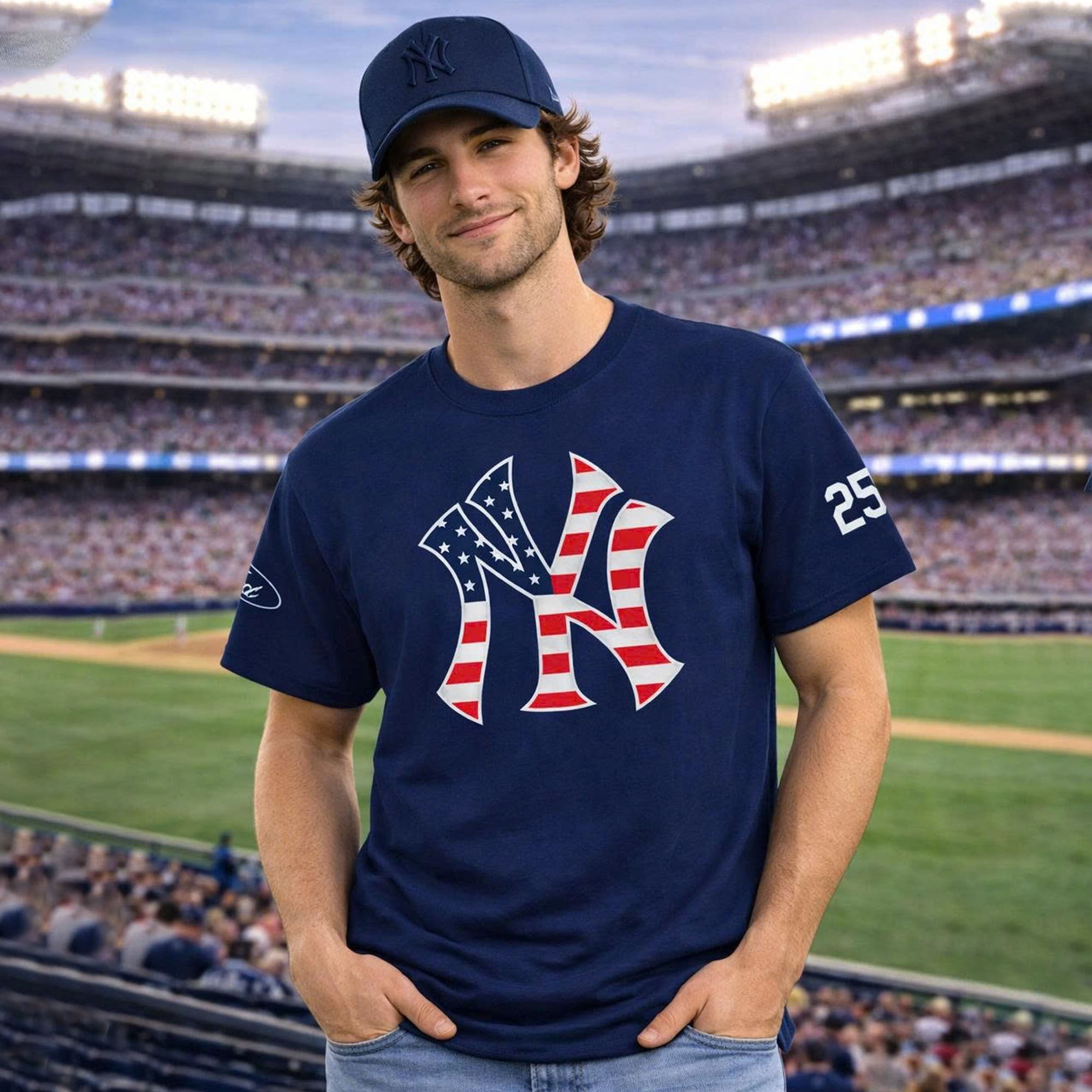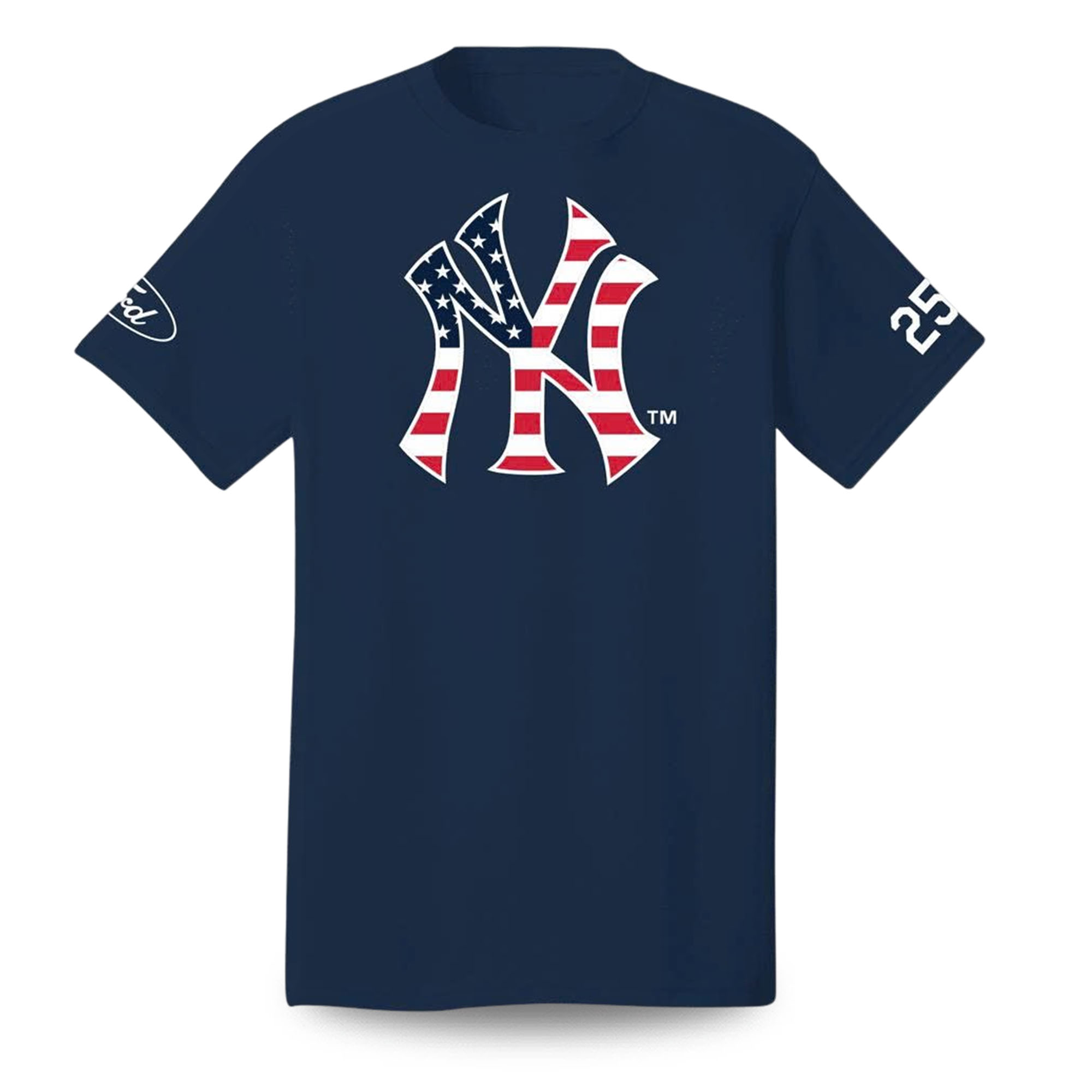 What makes this shirt special is the combination of Yankees identity with a patriotic theme. The flag-inspired logo stands out prominently against a navy blue background, creating a strong visual impact. The modern and comfortable fit allows for easy movement throughout the day. The print quality remains sharp even after multiple washes, helping the shirt stay fresh over time.