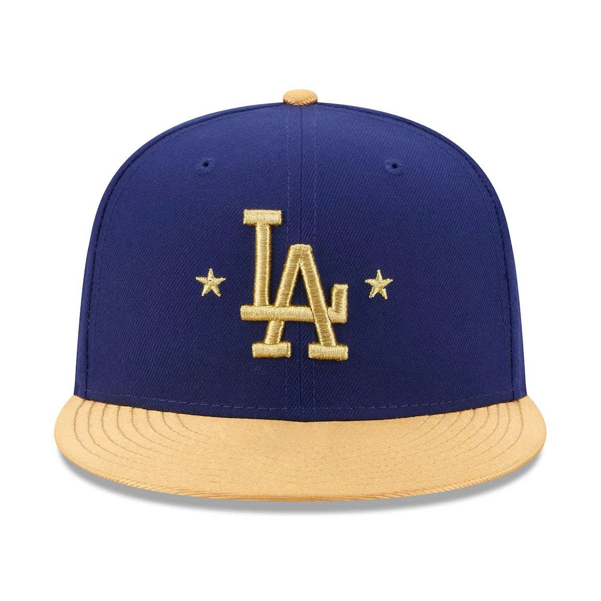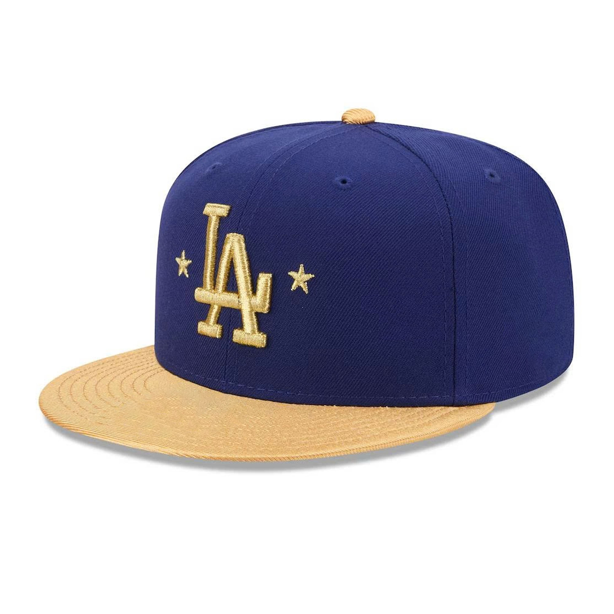 This cap features a deep royal blue crown combined with a flat gold brim for a sharp contrast. The front displays the classic LA logo embroidered in gold thread, surrounded by delicate star details that highlight the championship theme. A commemorative patch on the side adds further meaning, making the cap special and memorable for fans who want to celebrate in style.