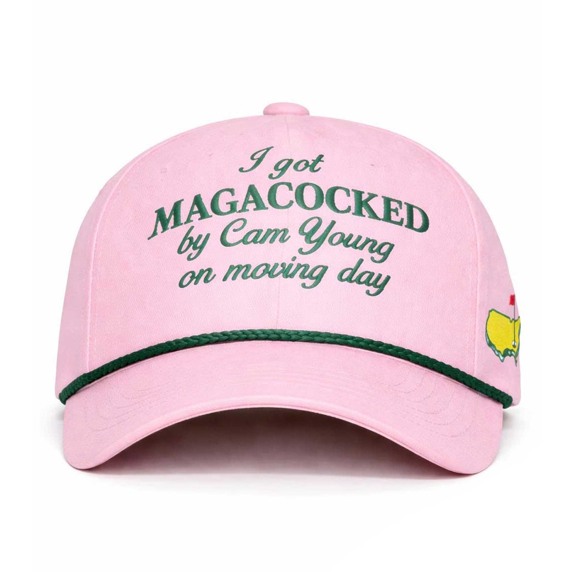 The 2026 Masters Golf I Got Magacocked By Cam Young On Moving Day Hat reflects the growing trend of humorous golf fashion. Inspired by memorable tournament moments and fan culture, this design captures the energy of moving day, when competition is intense and excitement reaches its peak. With its playful slogan and eye-catching colors, this hat brings personality to a space known for its classic style, making it stand out among modern golf accessories.
