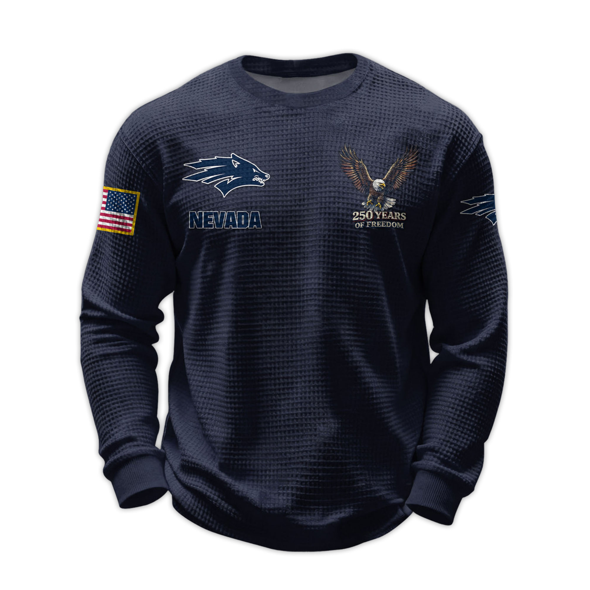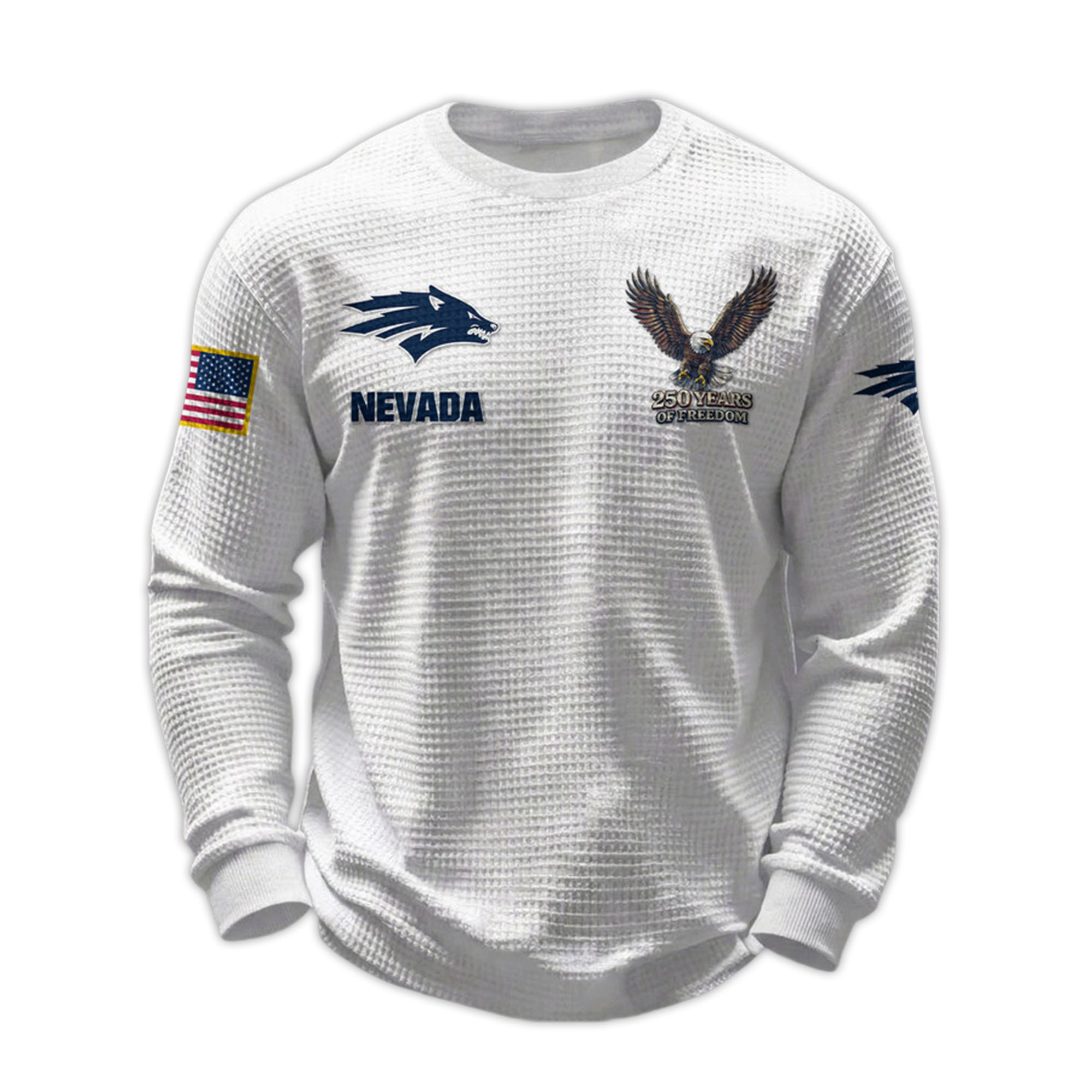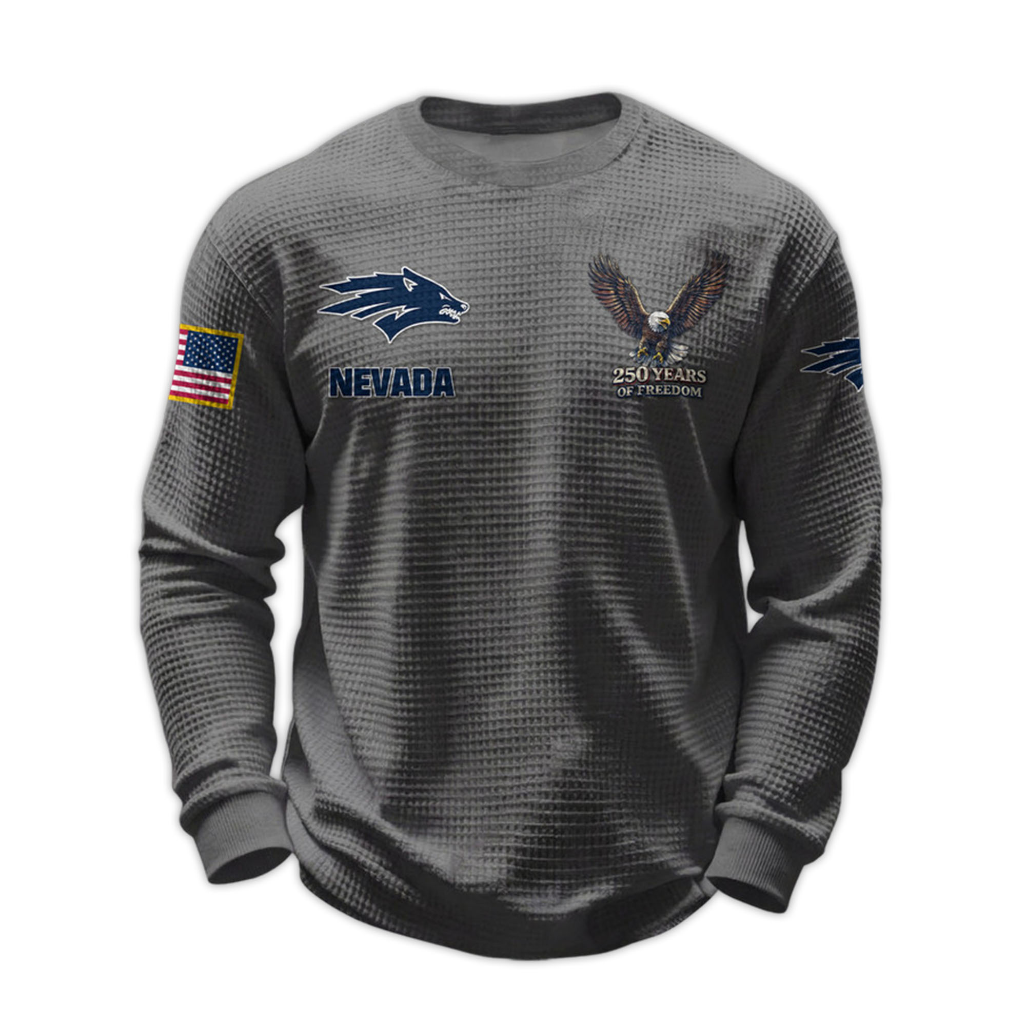The 2026 Nevada 250 Years Of Freedom Waffle Sweatshirt combines modern comfort with meaningful design. Inspired by the pride of the Nevada Wolf Pack, this shirt reflects both loyalty to the team and a resonant anniversary theme that resonates with fans.