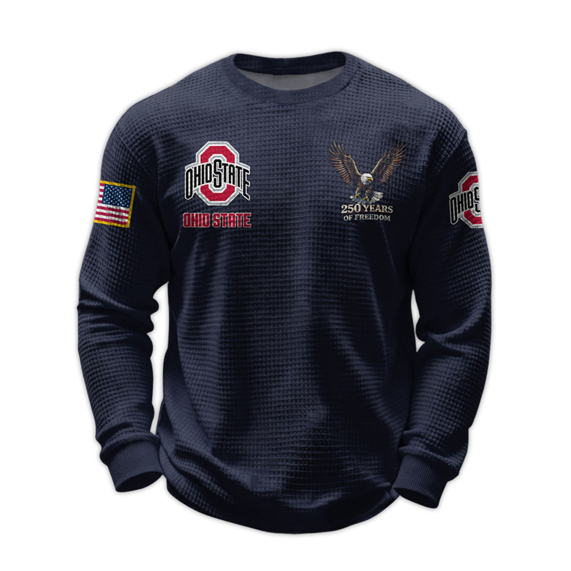 Ohio State University 250th Anniversary Freedom Waffle Knit Sweatshirt 2026 – Striking Style for True Buckeyes Fans