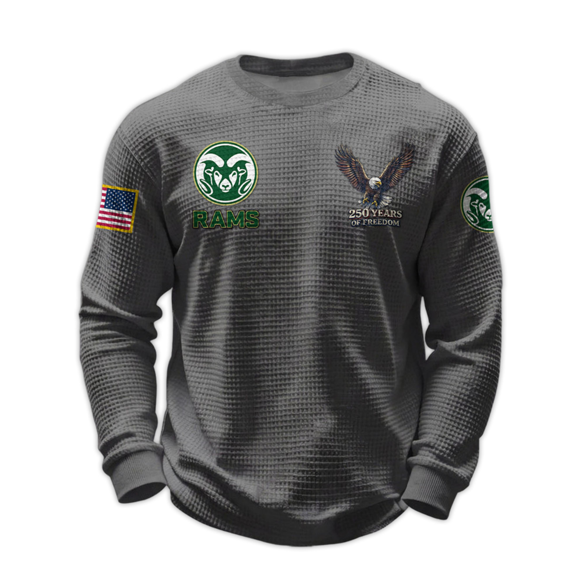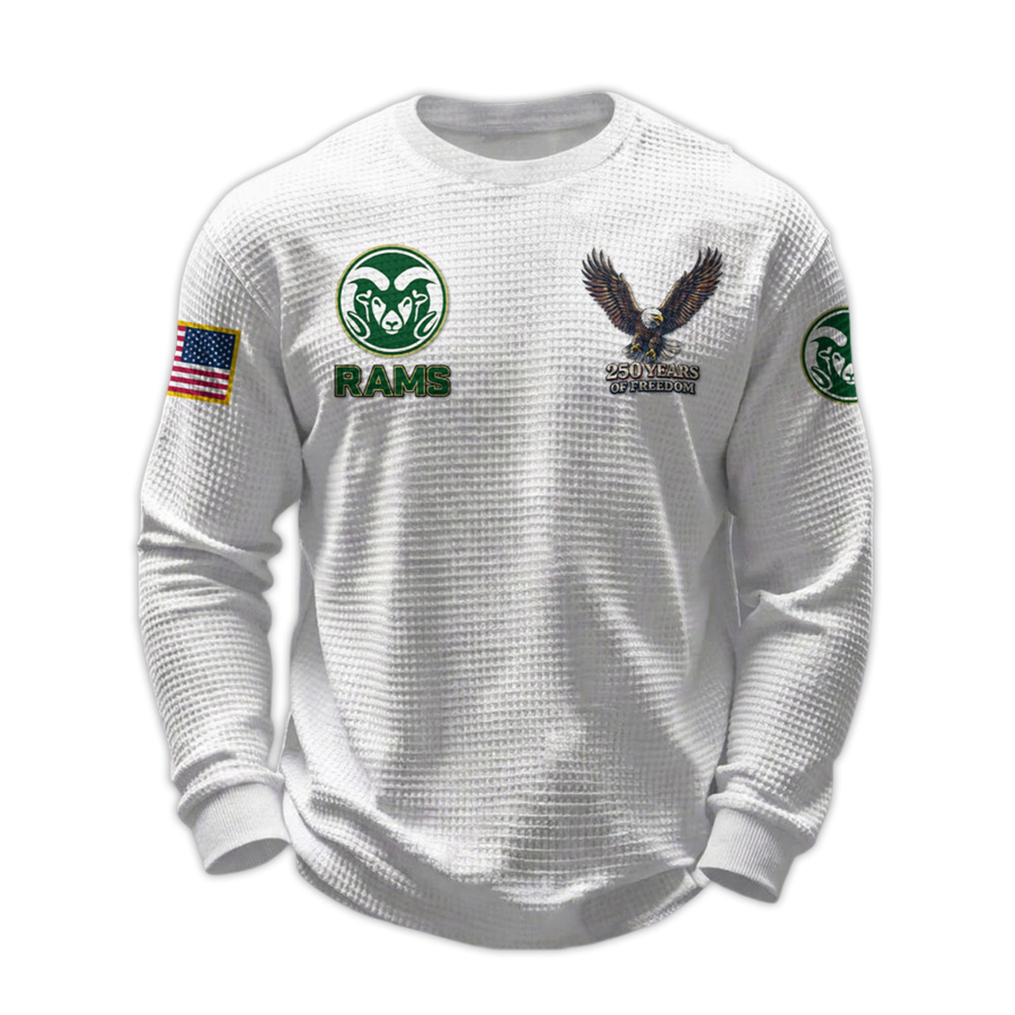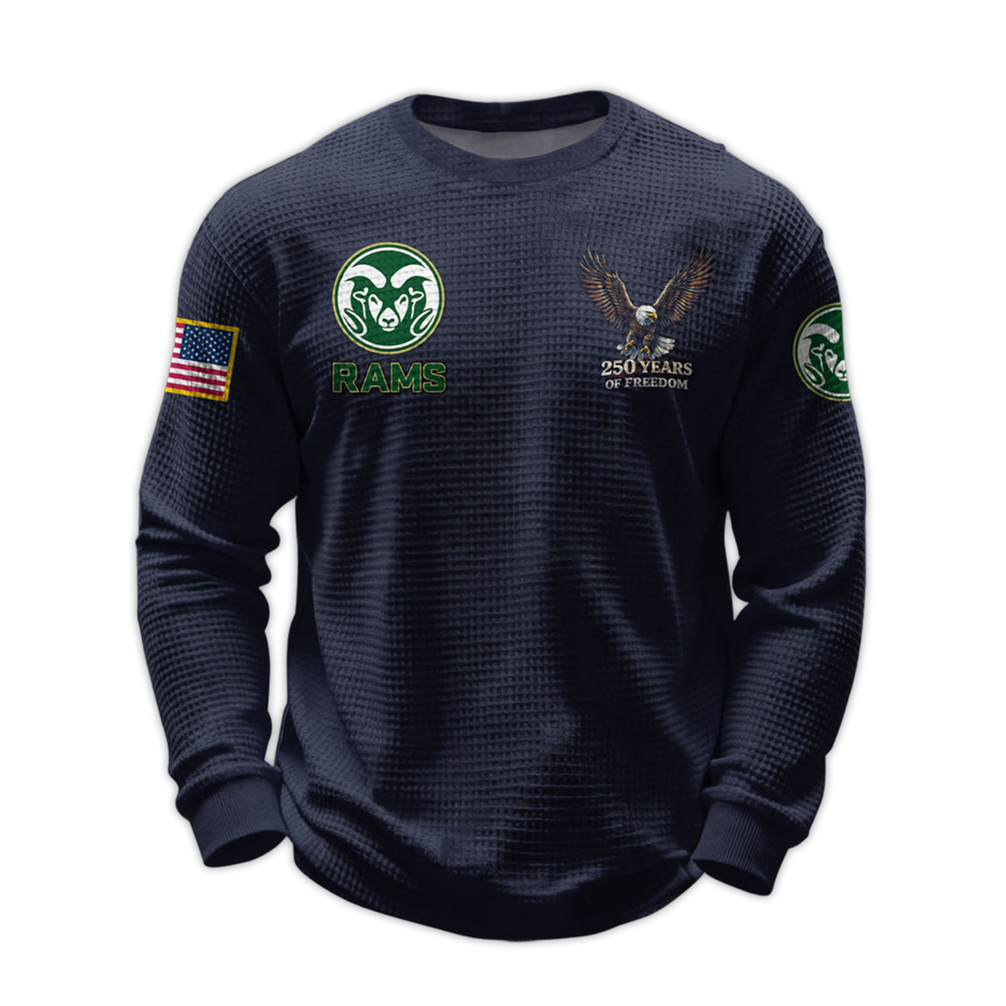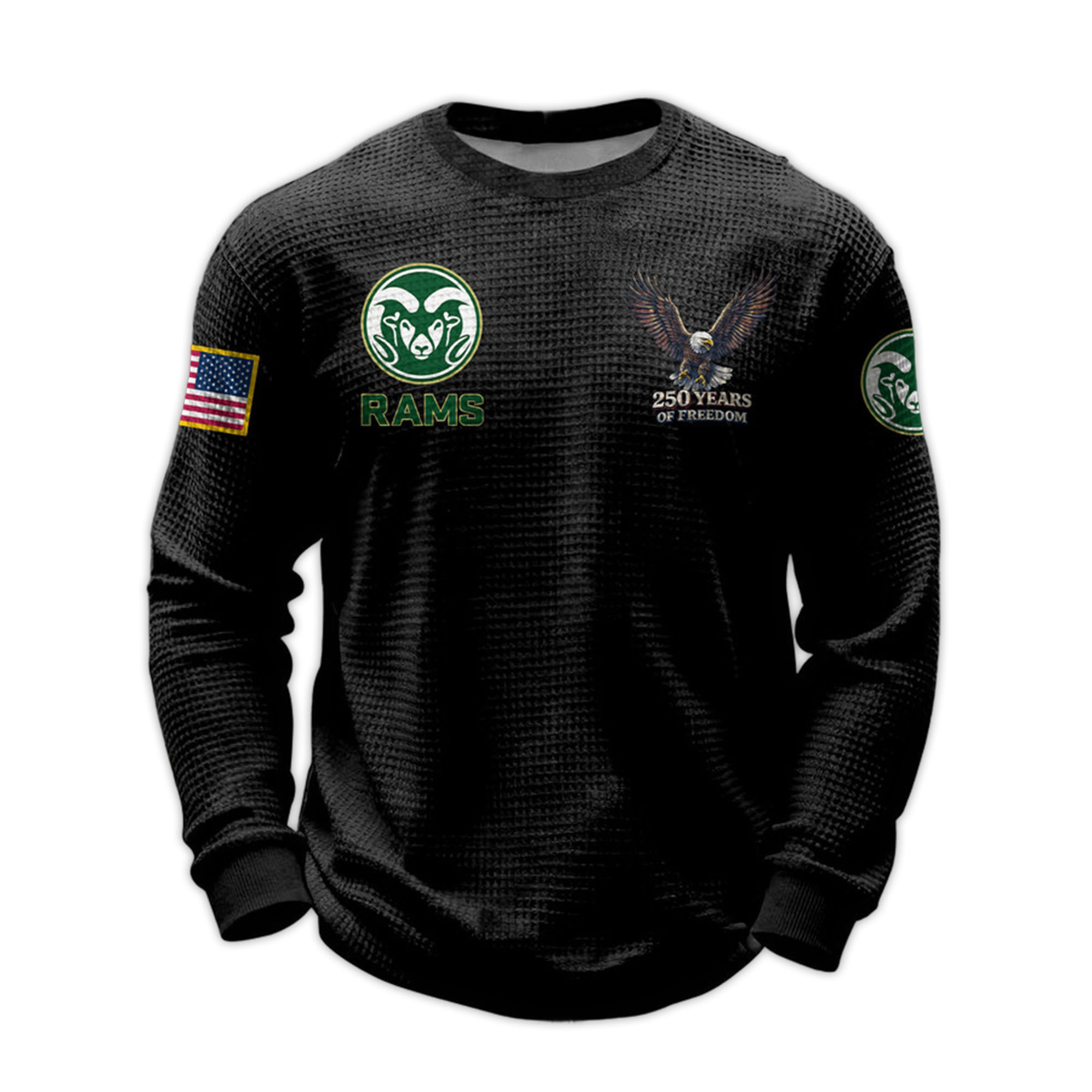 The 2026 Rams 250 Years Of Freedom Waffle Sweatshirt strong team pride and meaningful celebration of American history. With its simple design and comfortable feel, this sweatshirt is ideal for fans who want something simple yet expressive. It easily complements everyday outfits while still carrying a profound message.