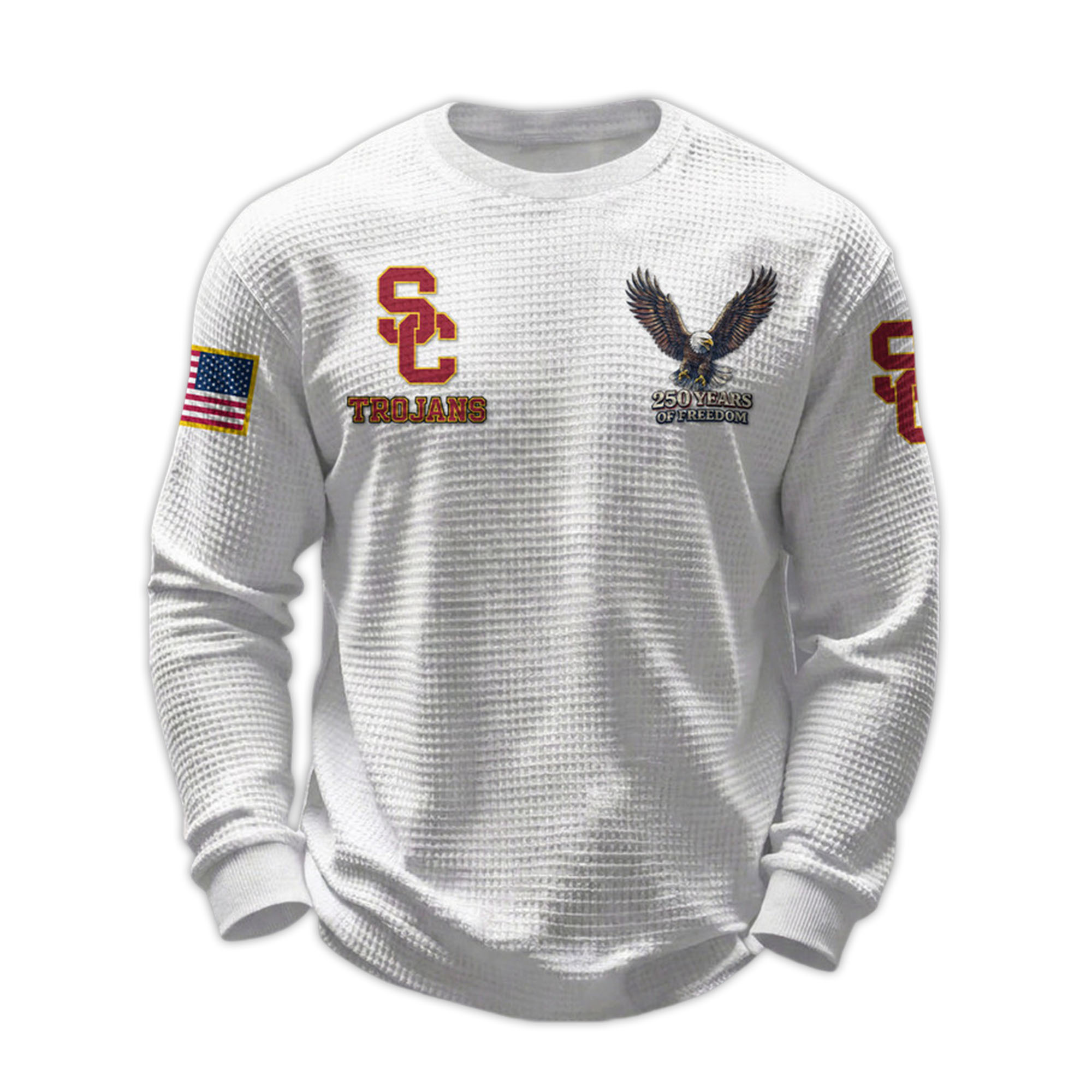The 2026 Trojans 250 Years Of Freedom Waffle Sweatshirt is gaining attention as a standout item in college fashion this year. Inspired by the 250th anniversary of freedom, the shirt combines USC Trojans pride with meaningful national symbolism. This design is for fans who want something new, stylish, and connected to a bigger story.