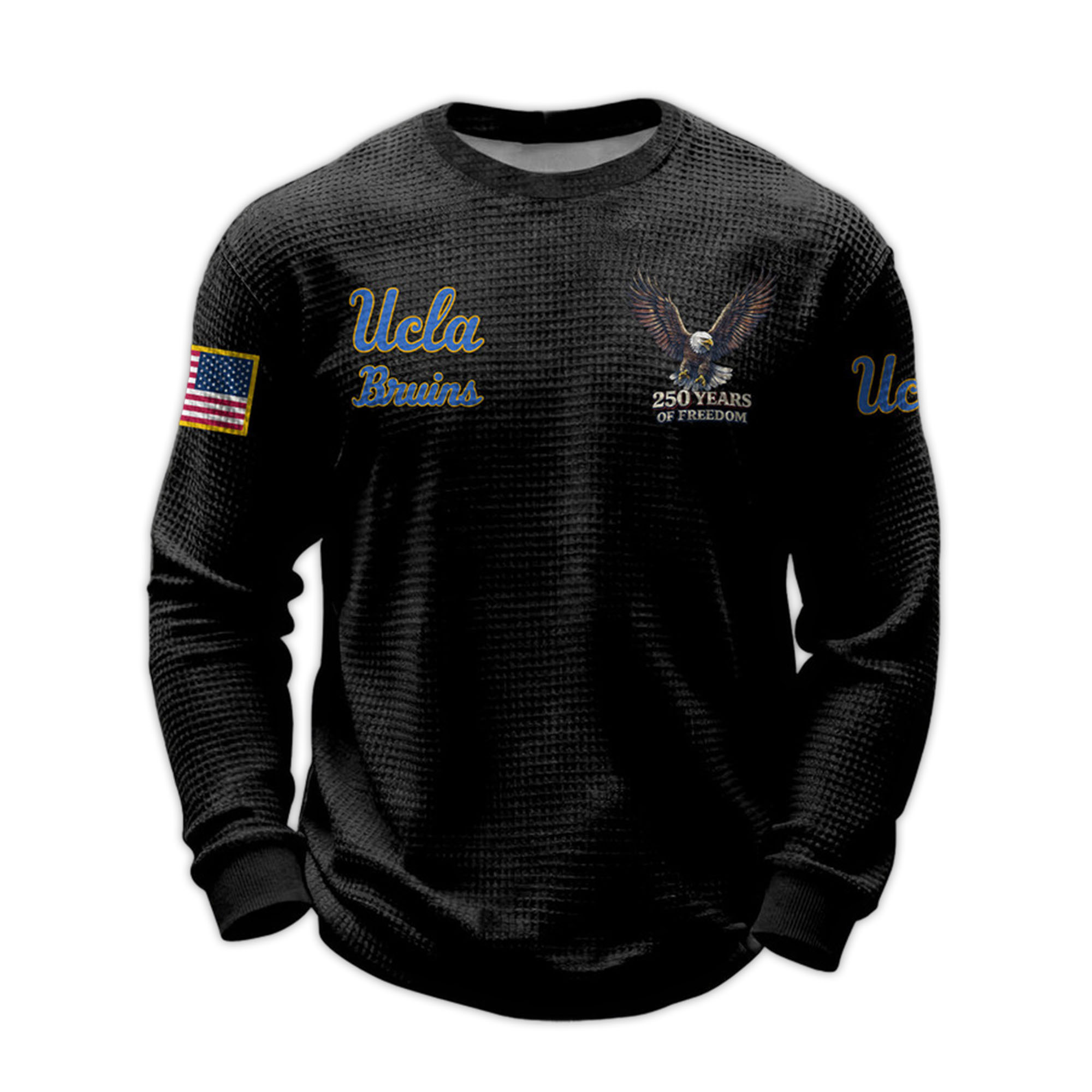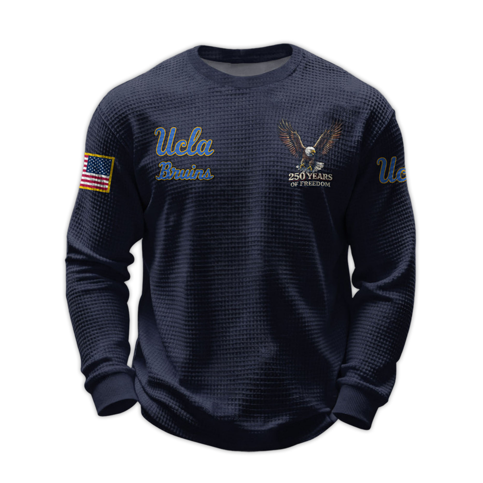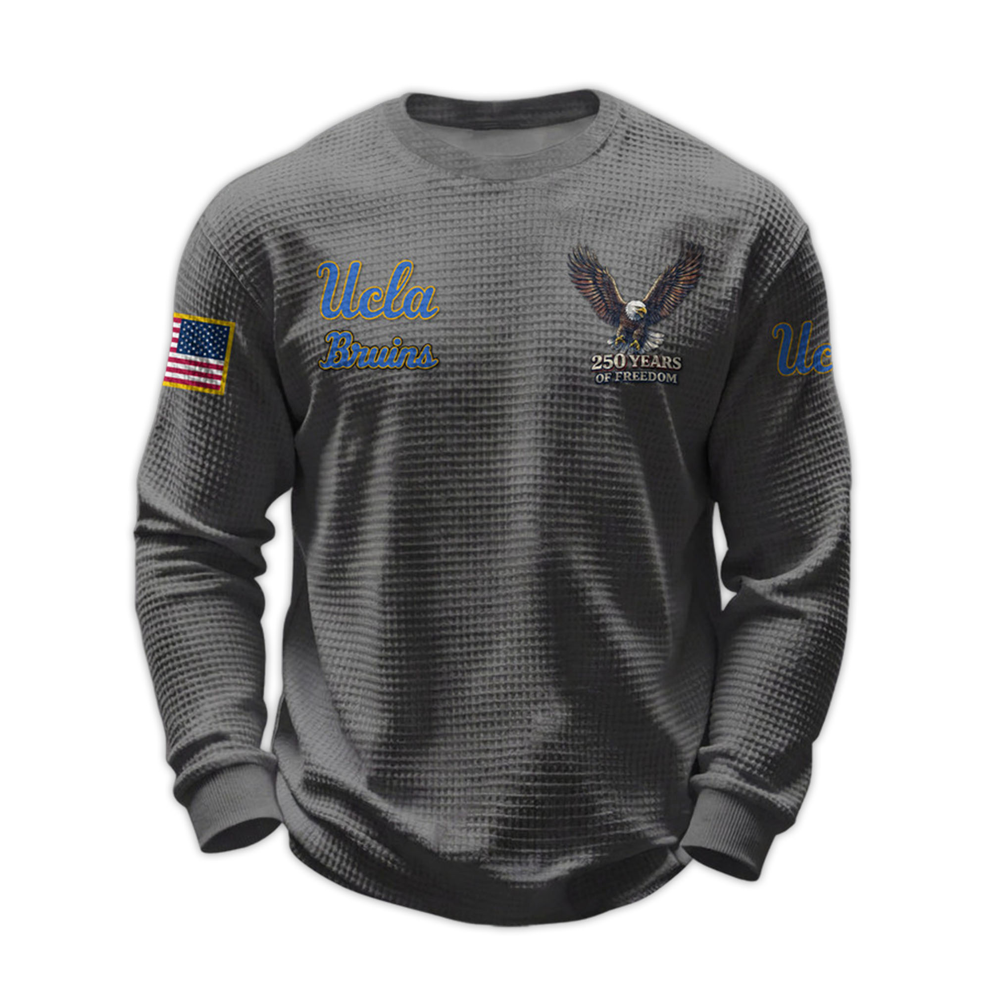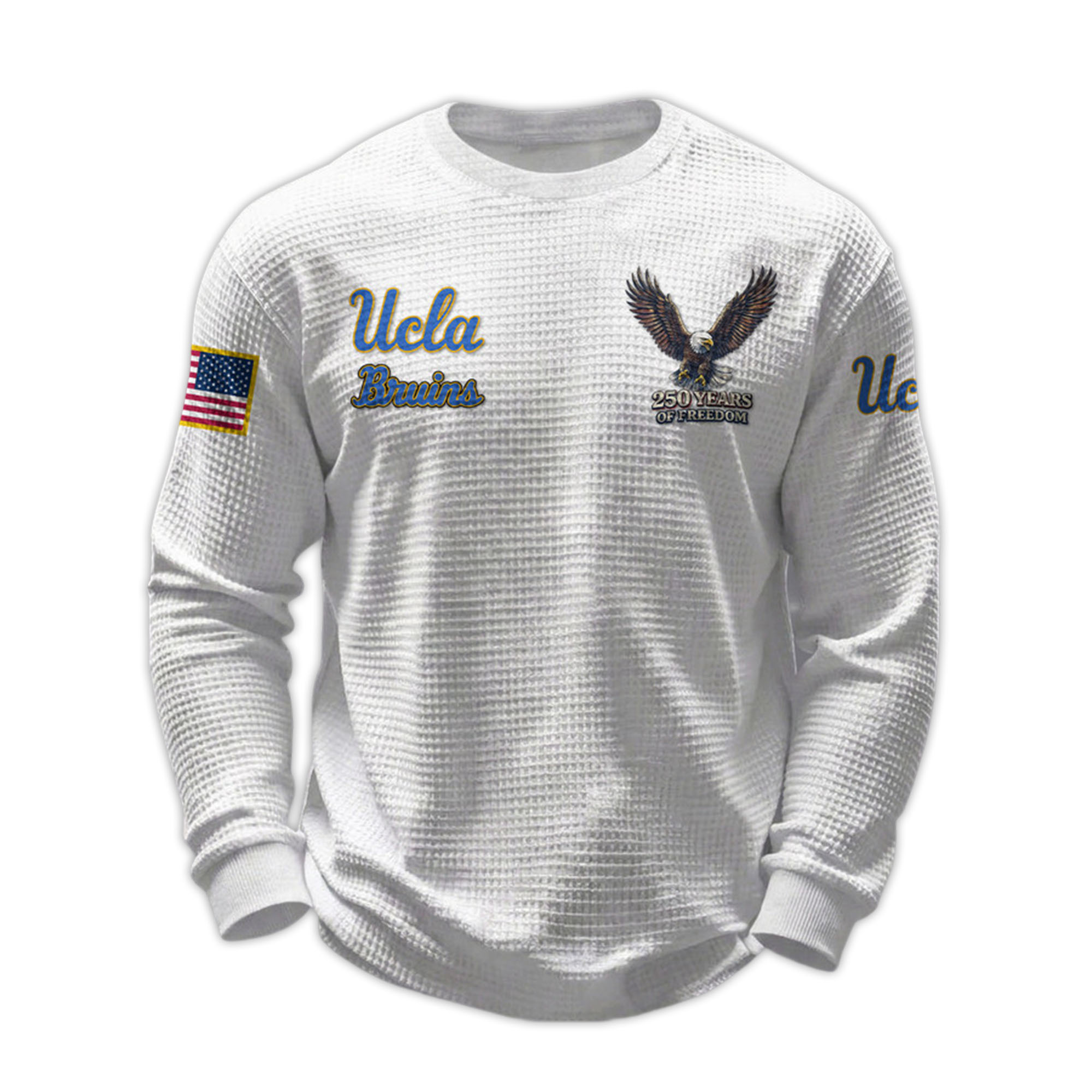 The 2026 Ucla Bruins 250 Years Of Freedom Waffle Sweatshirt combines college pride and a meaningful celebration of history. Designed for fans who want something different, this product reflects both UCLA identity and a patriotic message. Easy to wear, easy to style, and suitable for everyday life.