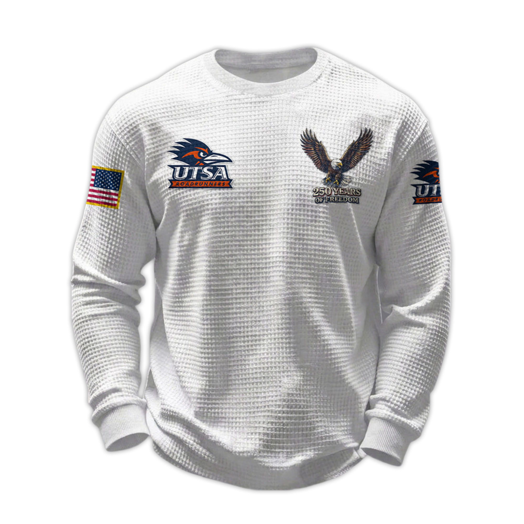 The 2026 Utsa Roadrunners 250 Years Of Freedom Waffle Sweatshirt combines UTSA pride with a powerful patriotic message. Designed for fans who love comfort and simple style, this sweatshirt stands out in 2026 with its sporty feel and meaningful graphics.