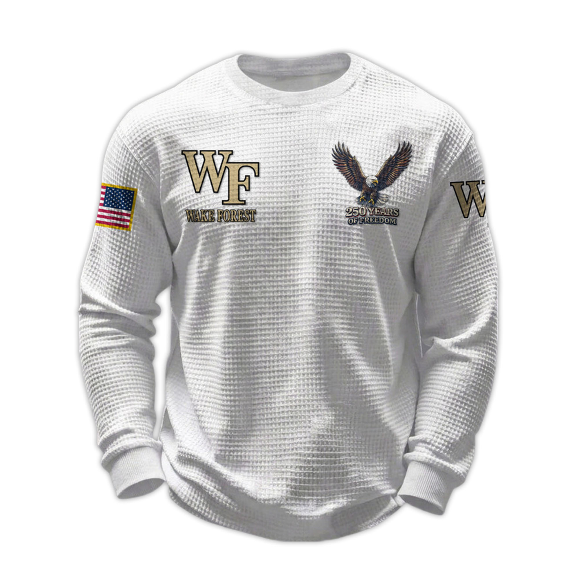 This 2026 Wake Forest 250 Years Of Freedom Waffle Sweatshirt combines the spirit of the university and a meaningful national celebration in a simple design. With its sporty feel and easy to wear style, this is a great choice for fans who want to stay comfortable while showing their pride in Wake Forest University in 2026.