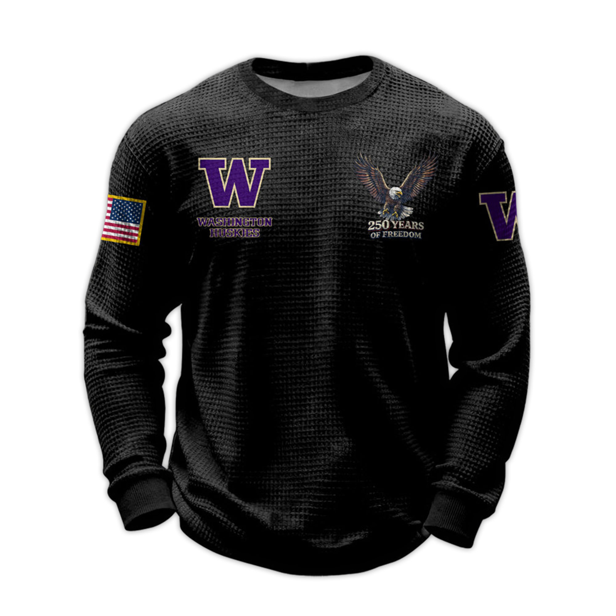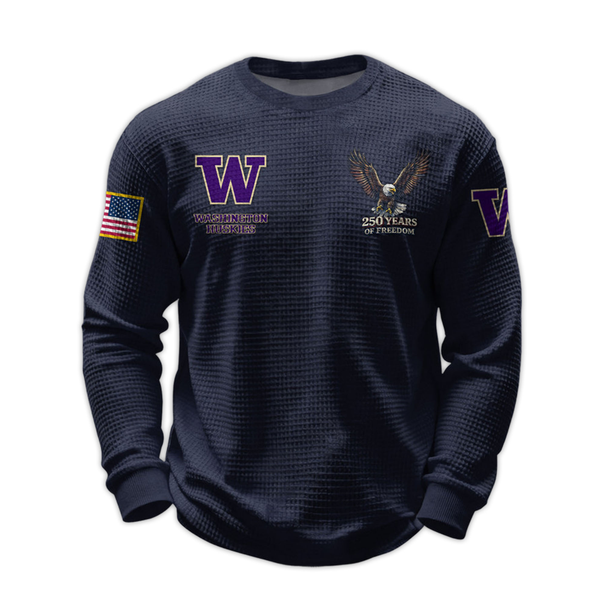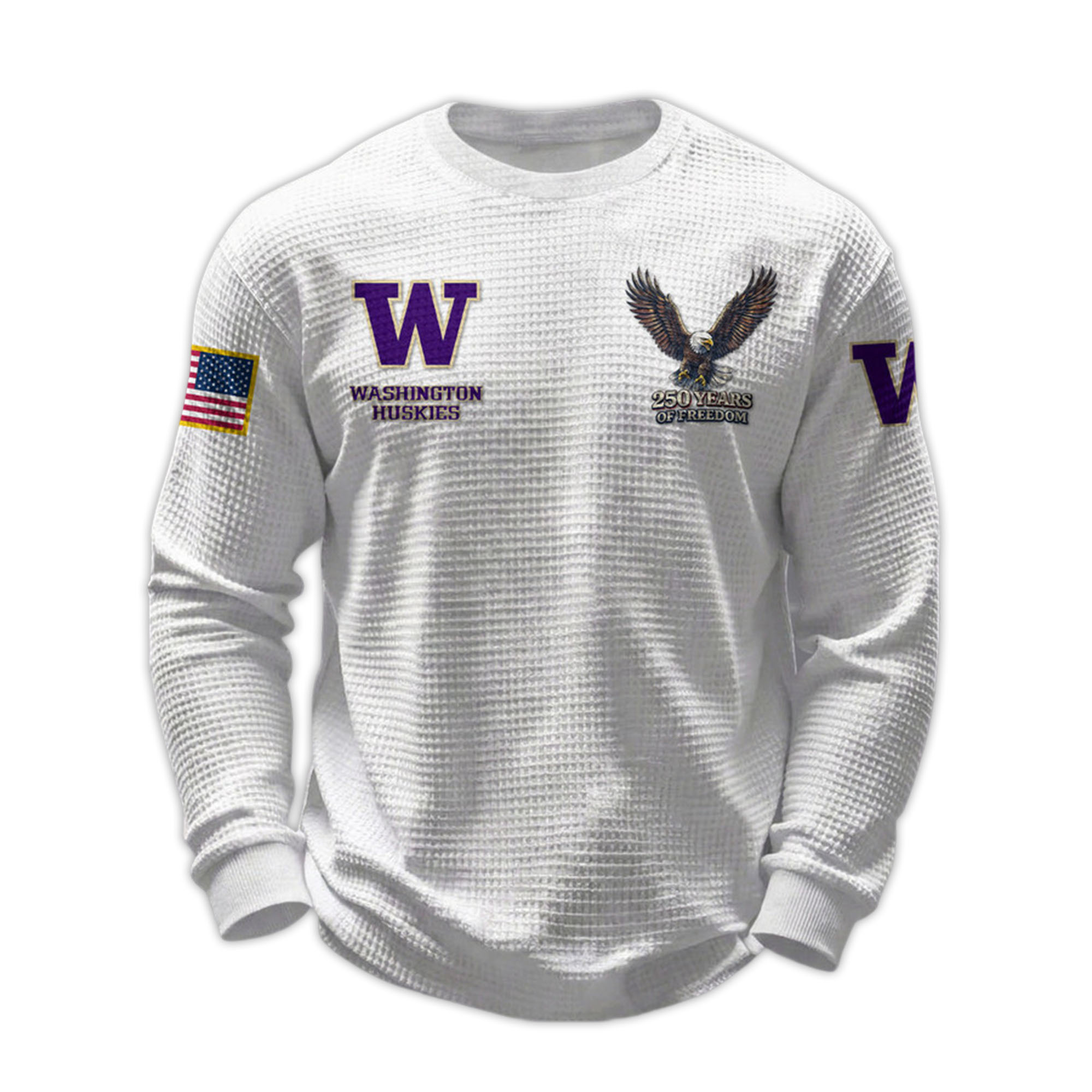 The 2026 Washington Huskies 250 Years Of Freedom Waffle Sweatshirt is becoming a popular choice for fans seeking a simple yet meaningful design. Inspired by the 250th anniversary of freedom, it combines Huskies pride with a modern aesthetic. This sweatshirt is perfect for those who want to stay stylish while showing their love for their team.