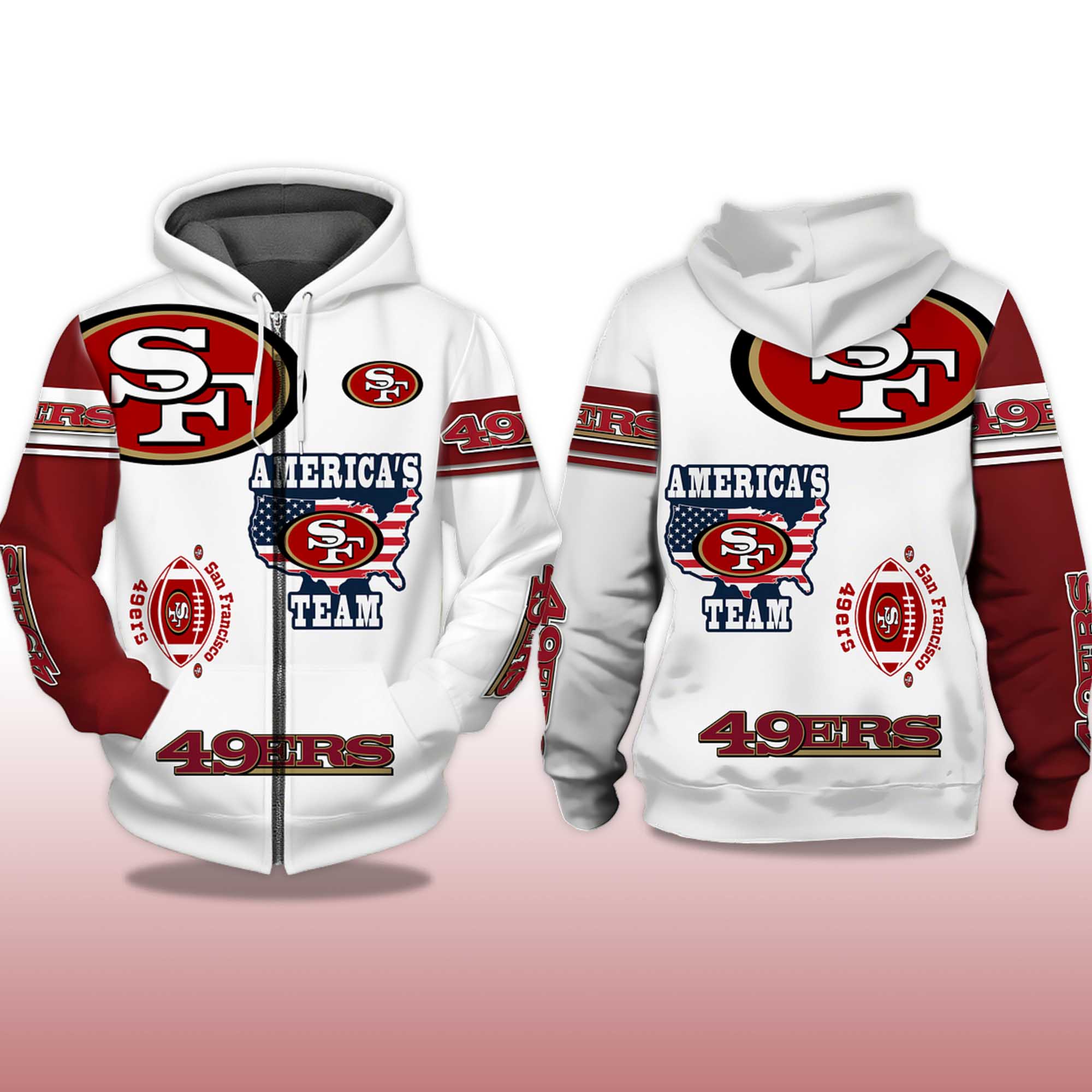 The 49ers America’s Team Zip Hoodie is everything fans love strong team energy, meaningful messaging, and everyday comfort. The combination of bright white and bold red highlights the graphic, while the full-length zipper makes it easy to throw on your favorite T-shirt. Whether you’re at Stadium, hanging out with friends, or just hanging out, this hoodie exudes unmistakable 49ers style.