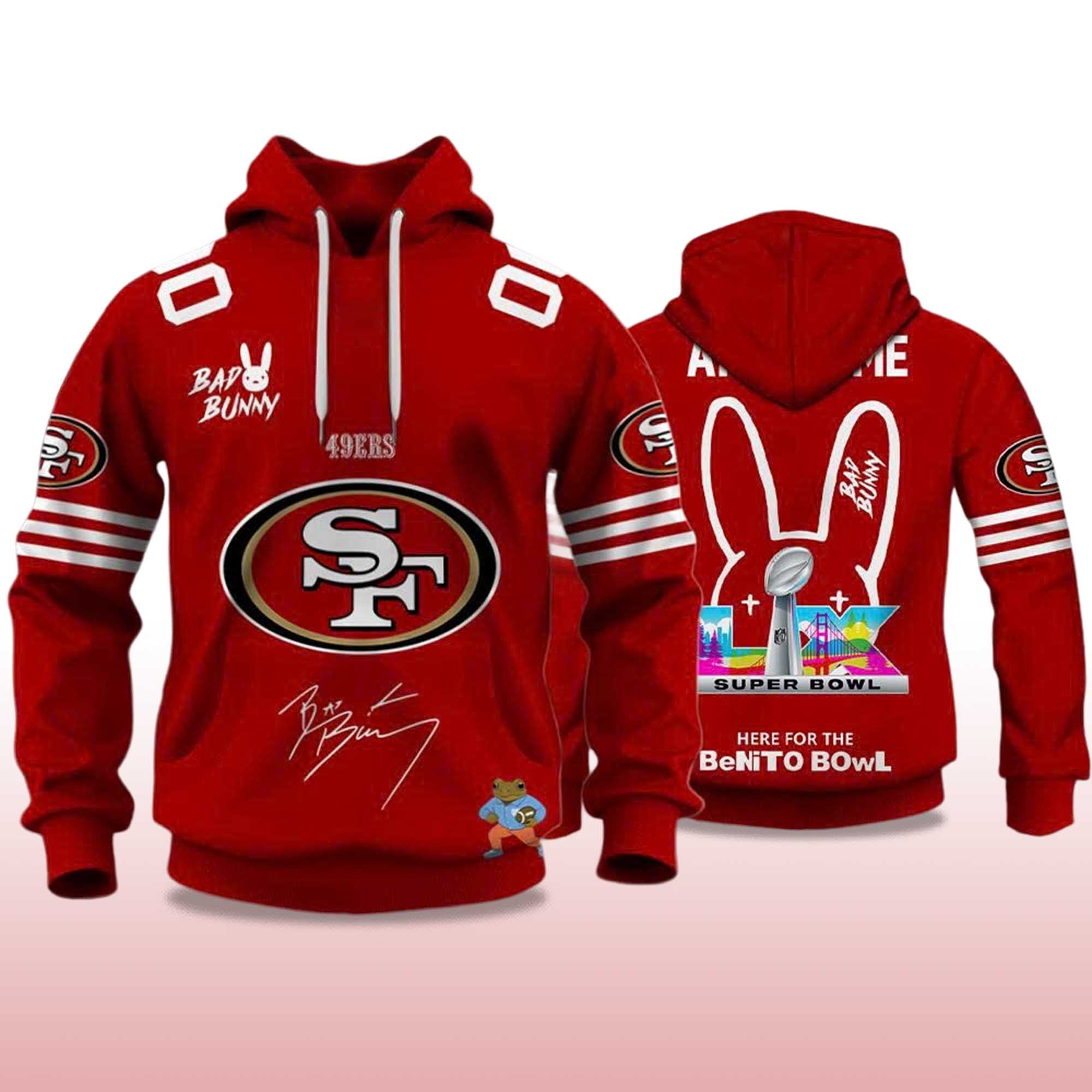 The 49ers Bad Bunny Bowl LX 2026 Hoodie redefines fan fashion with a fusion of music, fashion, and football culture. Created in honor of the 2026 Super Bowl LX, it celebrates the passion of 49ers fans and Bad Bunny’s global influence. This hoodie brings stadium vibes to street style, perfect for those who live life with energy, pride, and energy.
