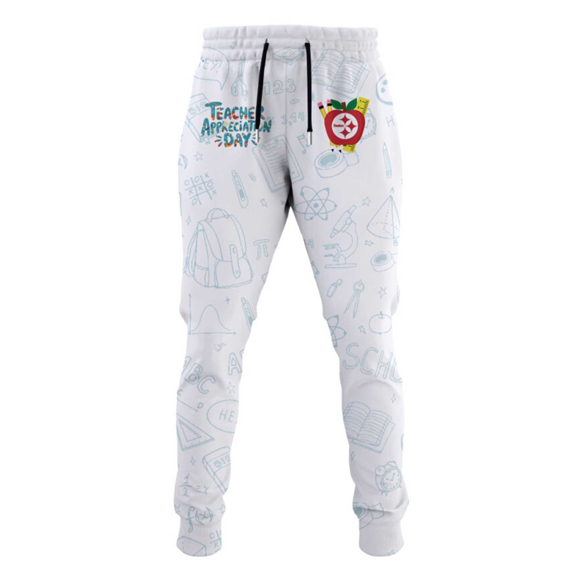 This design represents the perfect blend of school-day fun and football energy. The front features a bold 49ers logo paired with a playful apple graphic, while the back celebrates Teacher Appreciation Day with colorful lettering, a rainbow, and the words “Teach Love Inspire.” The white base is covered in light-hearted doodles of books, pencils, and hearts for a playful academic touch. The soft, breathable fabric keeps you cozy whether you’re in the classroom or cheering on game day.