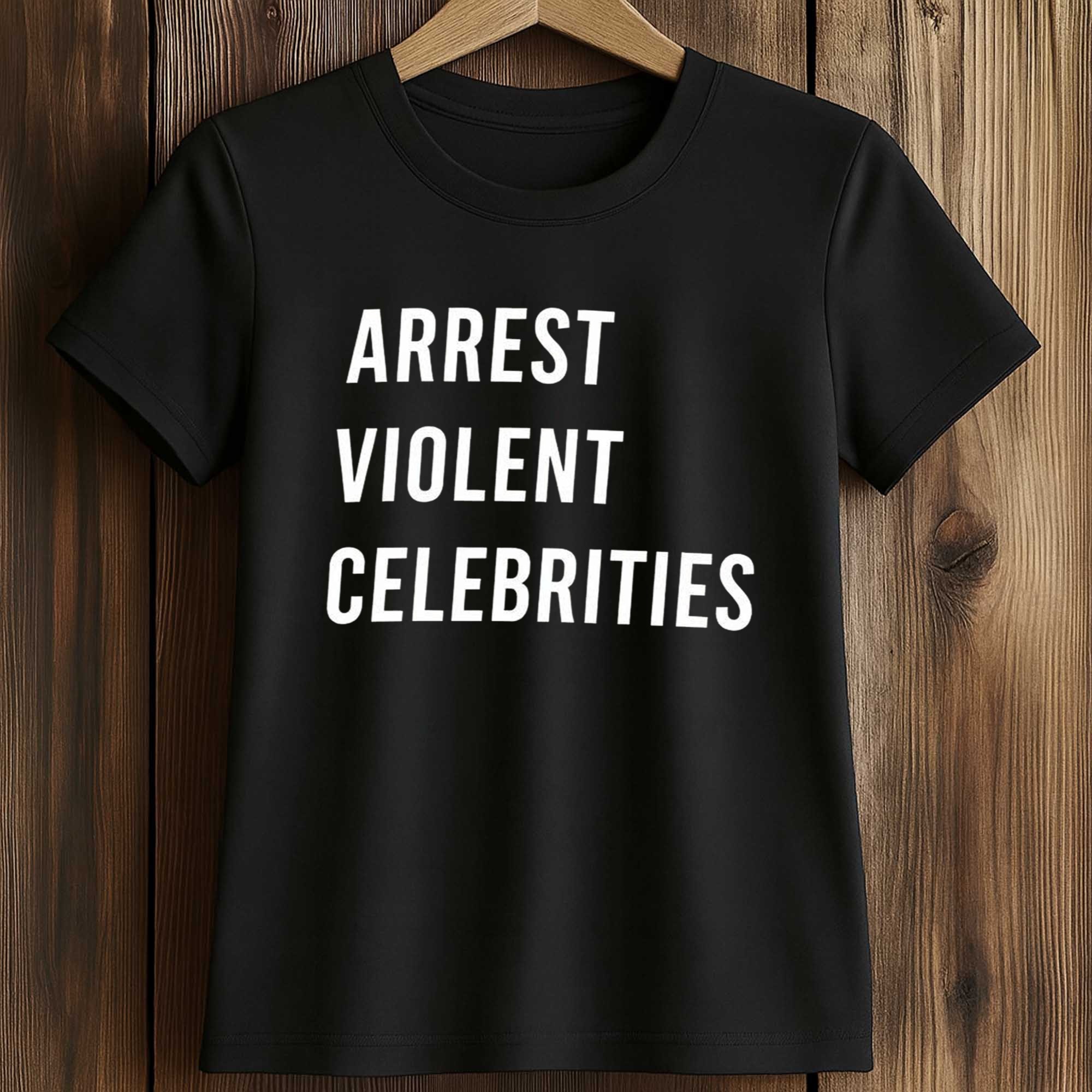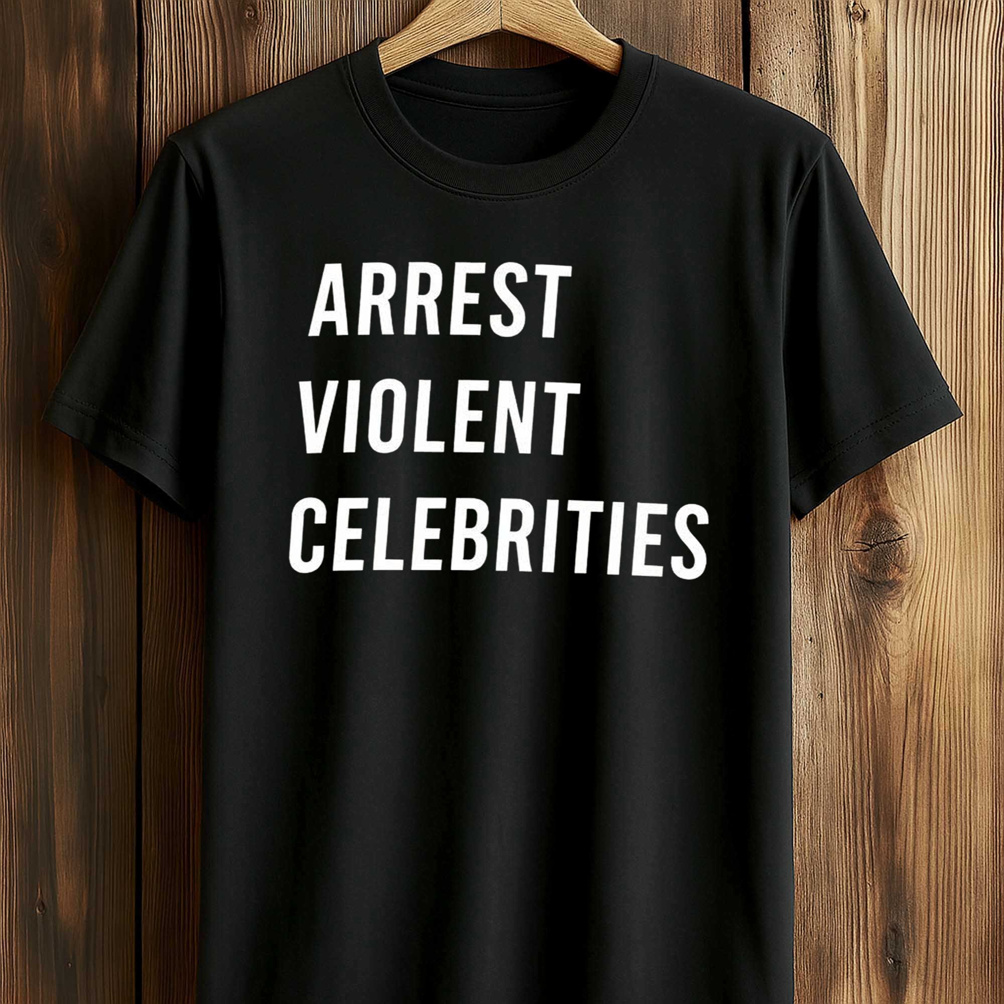 The Alan Ritchson Arrest Violent Celebrities Shirt is gaining attention on social media thanks to its direct, uninhibited message. Fans associate it with the strong, justice-focused image often associated with Alan Ritchson. The simple black t-shirt with striking white lettering makes people stop and look, turning it into a conversation topic wherever you go.