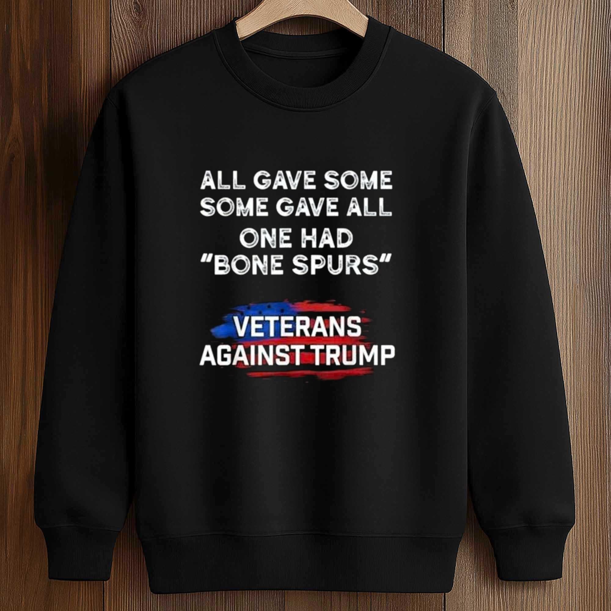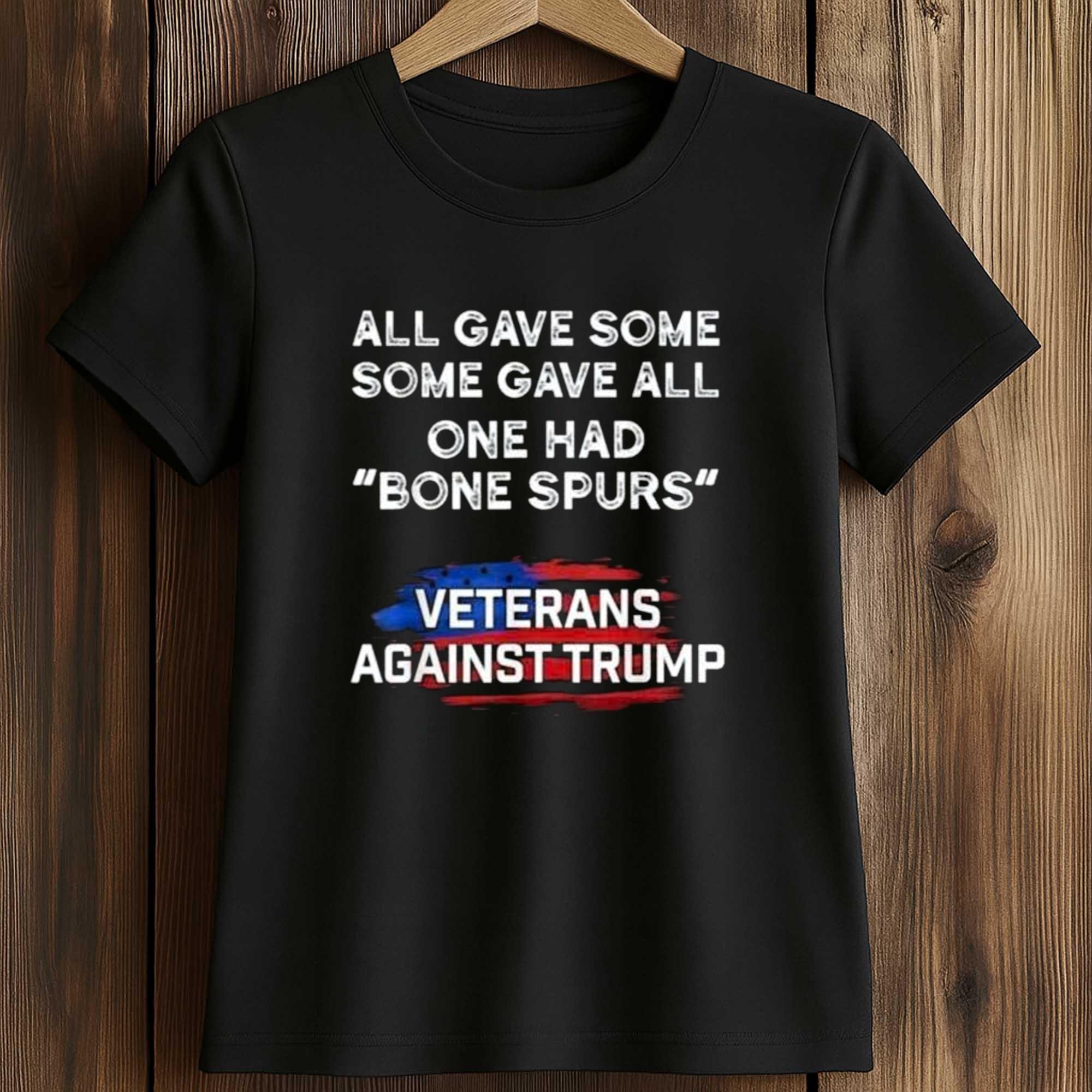 The All Gave Some Some Gave All One Had Bone Spurs Shirt a caught attention for its direct, impactful wording combined with a design that evokes the image of a veteran. Many people have noticed this shirt for its contrast between respectful, grateful language and a sharp, witty quote. This shirt stands out in discussions about expressive fashion and statement wear.