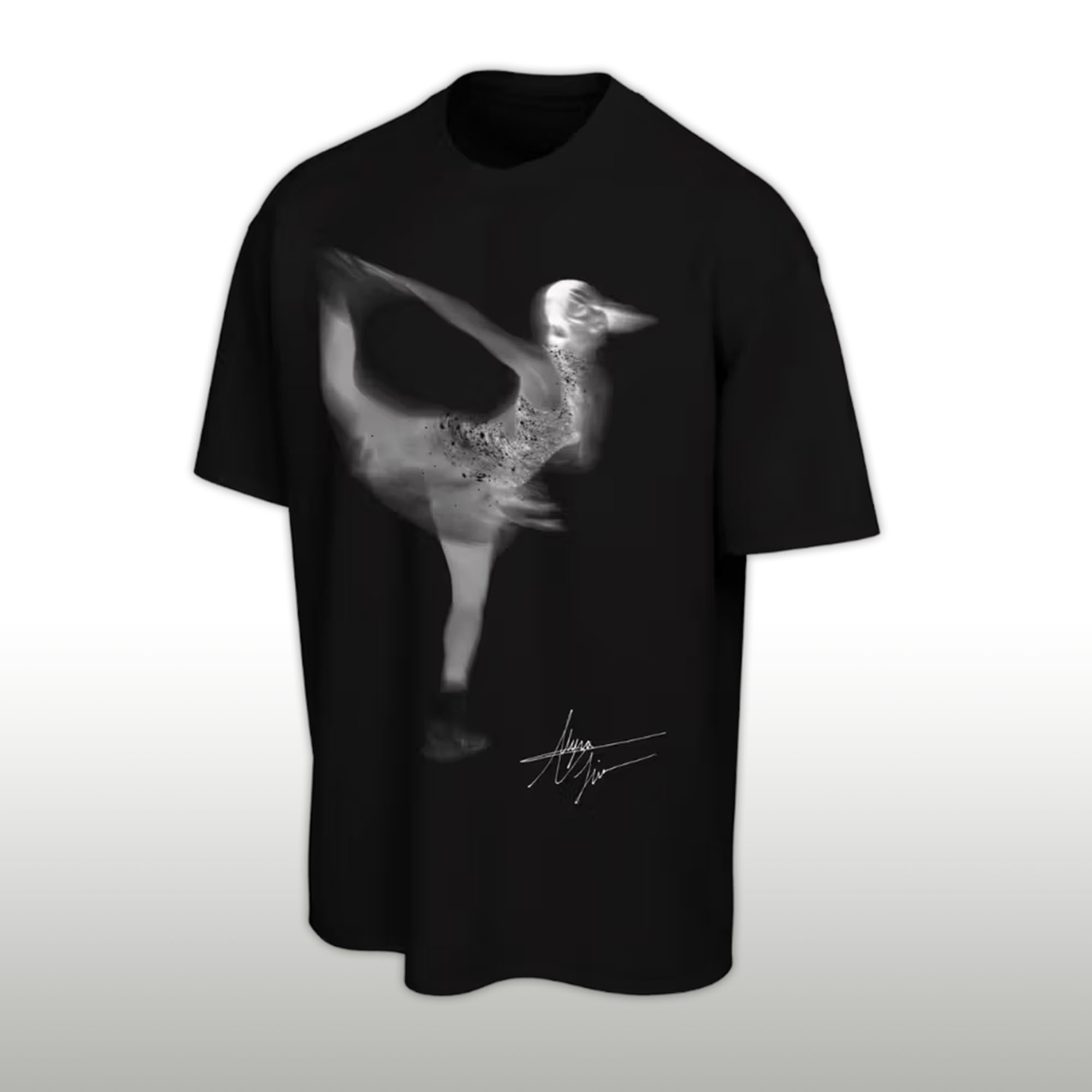 The highlight of this shirt is the elegant skating pose, smoothly and gracefully depicted, reflecting movement and precision. The monochrome design gives a modern feel, while the subtle signature detail adds a touch of personality. The print remains clear after multiple washes, and the comfortable fit makes it easy to pair with various outfits.