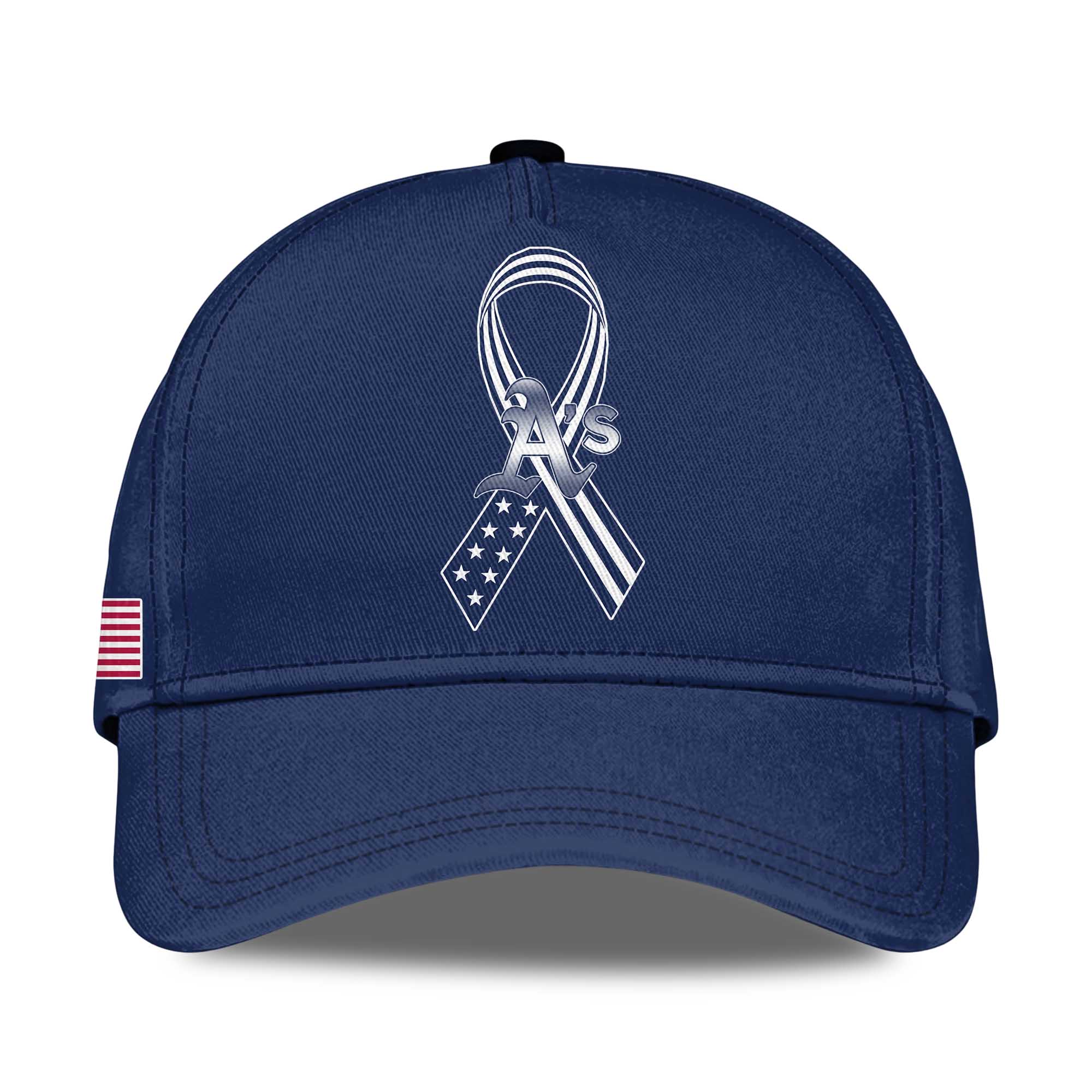 The navy blue background creates a strong color tone, combined with white accents that highlight the Athletics lettering on the front. The red poppy detail symbolizes Memorial Day. The back features a circular Remember and Honor emblem, combined with a microphone image and the number 2026. American flag elements and ribbon imagery emphasize the commemorative theme. Camouflage sleeves provide a sophisticated, military-inspired look.
