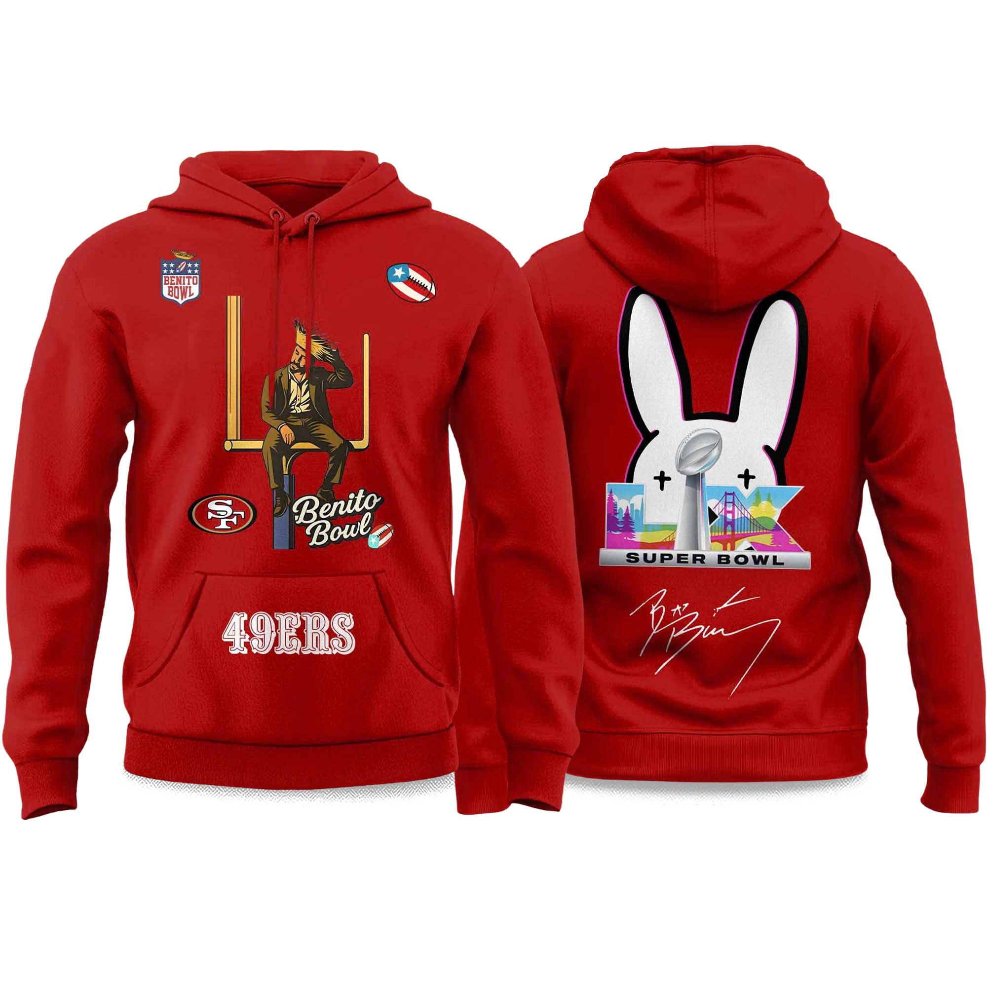Bad Bunny 2026 49ers Bowl LX Halftime Show Hoodie – Fiery Red Combined with Halftime Culture