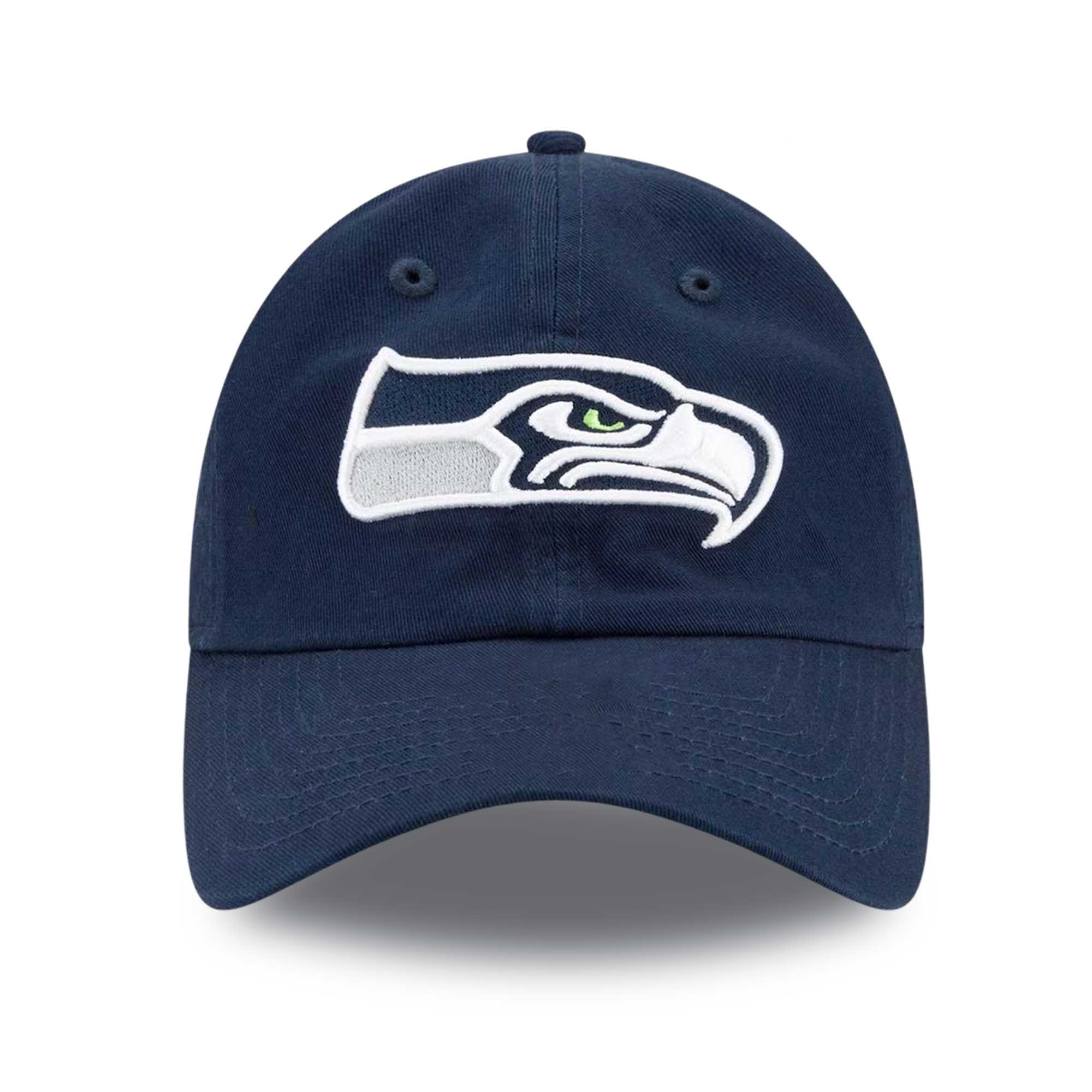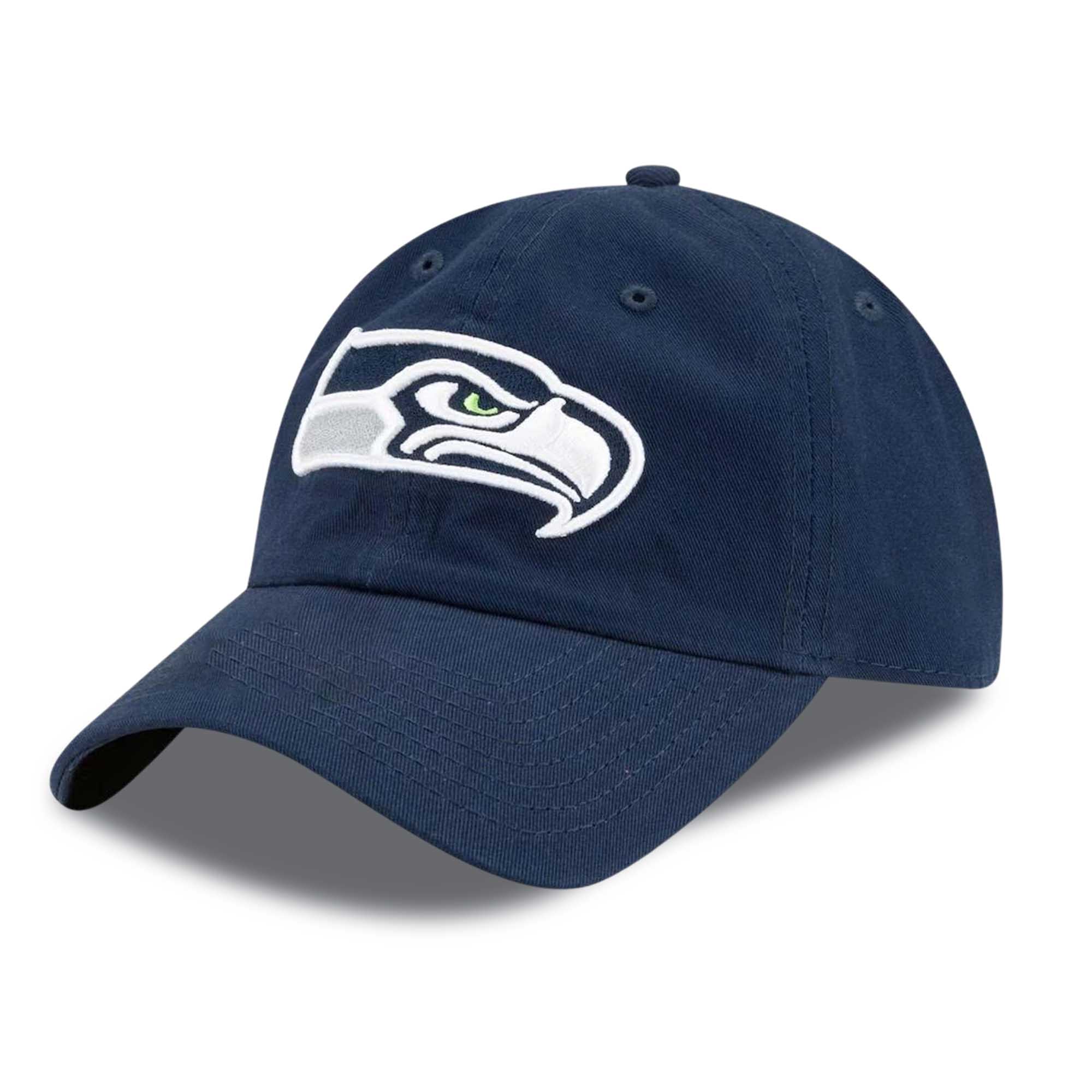 The cap is a deep navy blue with the iconic Seahawks logo embroidered on the front. A small detail on the side adds personality without making the design too flashy. The curved brim and adjustable back ensure a comfortable, snug fit, suitable for everyday use, concerts, game shows, or relaxing weekends.