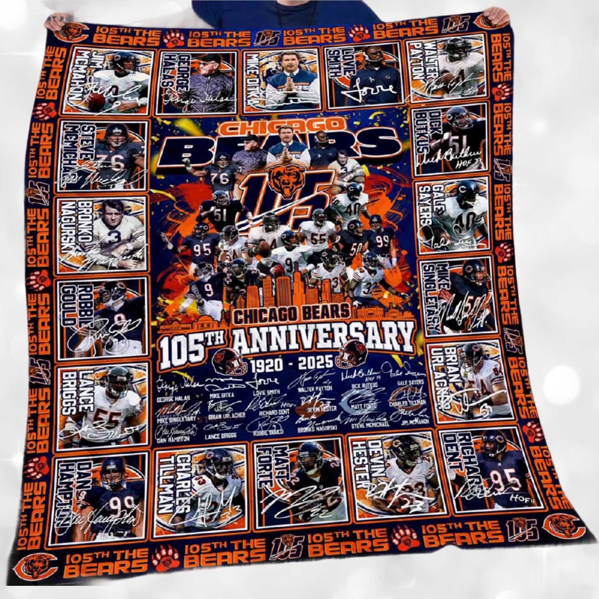 The Bears 105th Anniversary 1920-2025 Fleece Blanket celebrates over a century of legendary football moments. With vibrant graphics, iconic player images, and commemorative artwork, it recreates the history of the team in a bold, modern design. This blanket is more than just a decoration, it’s a tribute to loyal fans.