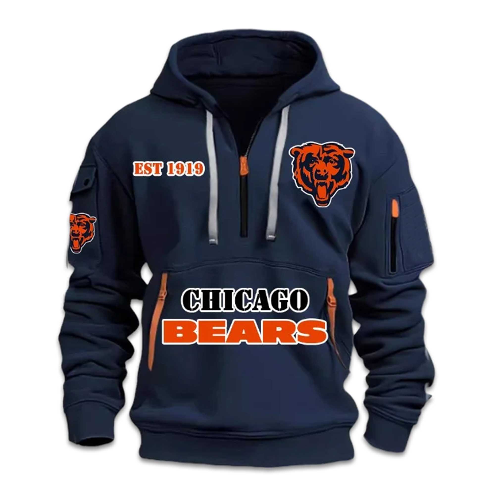 The Bears EST 1919 Quarter Zip Hoodie is designed for fans who love to show their pride in the team in a neat and confident way. Inspired by the Chicago Bears’ long history, this hoodie makes a strong visual impact while remaining easy to wear in everyday life. It suits fans who love sports culture, street style, and comfortable yet impactful outfits.