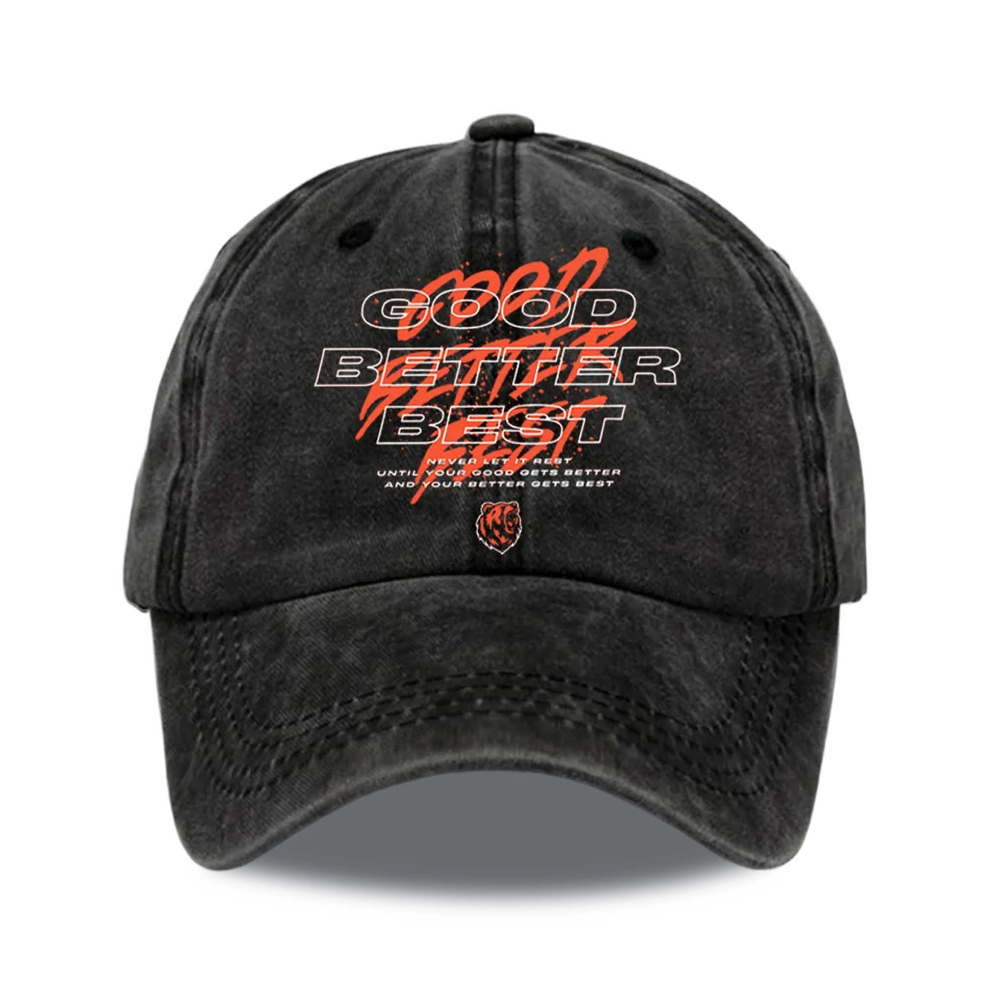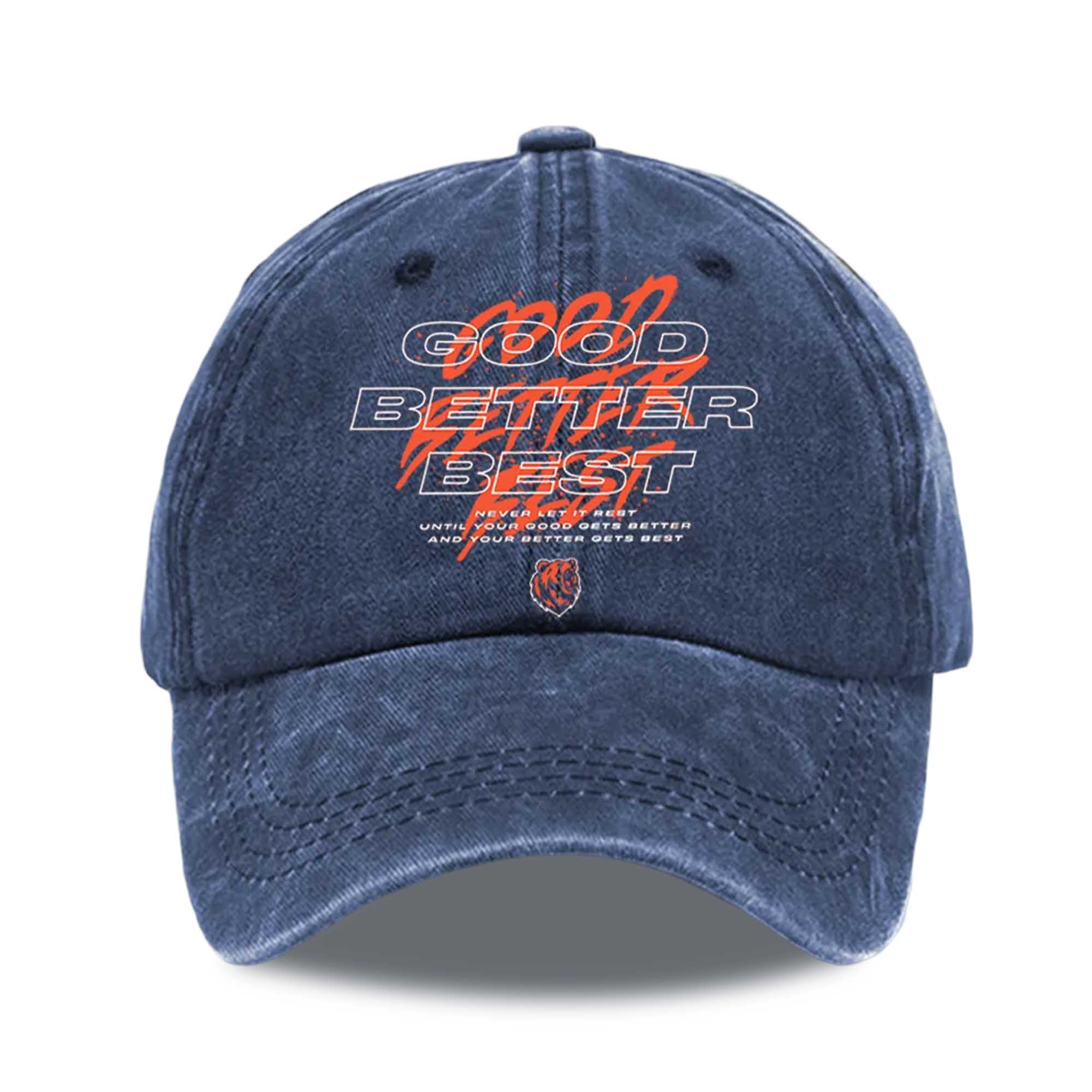 The Bears Good Better Best Hat combines a glossy black finish and layered inspirational text for an energetic, wearable look. Combining team-inspired charm with a message that pushes you forward, this hat is a great everyday accessory for fans who love purposeful, individualized apparel.