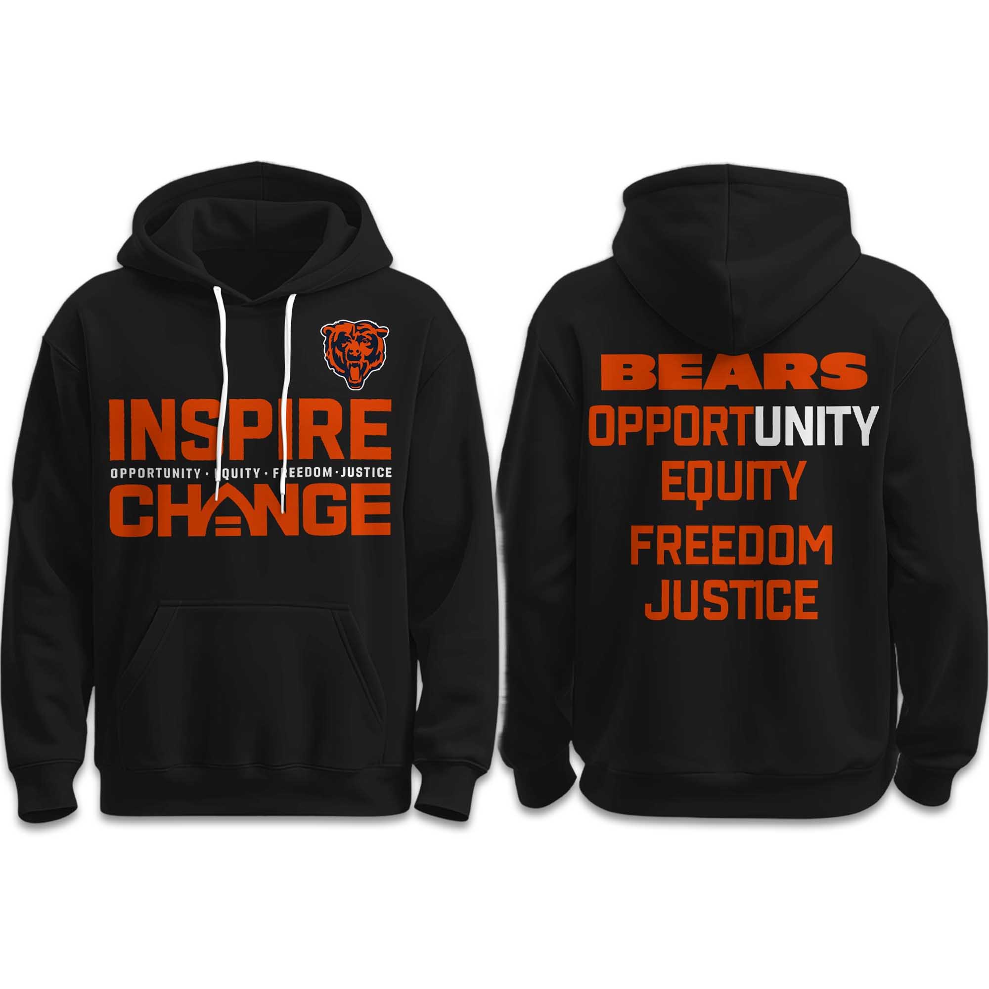The Bears Inspire Change Hoodie 2025 continues the Inspire Change initiative with sharper visuals and a stronger message. Representing the voice of the Chicago Bears, this new version emphasizes themes of opportunity, fairness, freedom, and justice. The 2025 design focuses on sharp contrasts, easy-to-read typography, and a confident layout, fitting the culture of fans embracing a modern lifestyle.