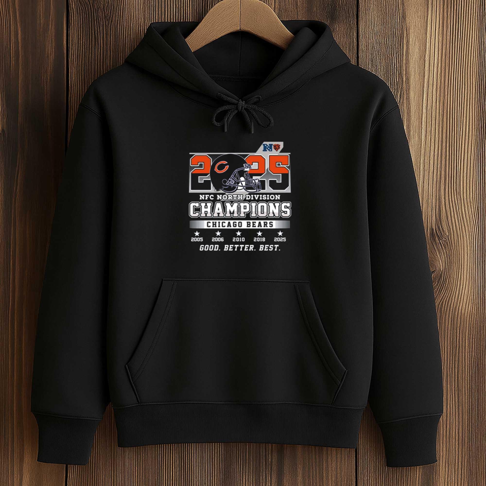 This shirt stands out because it focuses on the core elements rather than overly complex designs. The year, regional title, and team identity are clearly visible, offering lasting value beyond the season. Fans often choose this shirt because it has timeless appeal, is easy to wear, and is associated with a meaningful moment for Chicago Bears supporters.